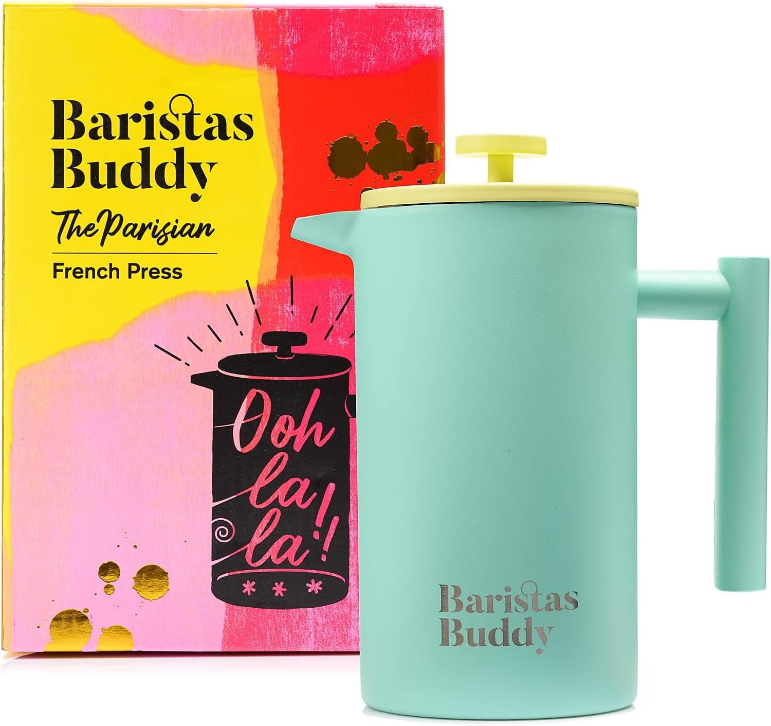 - Built To Last: The BaristasBuddy stainless steel French press is made with the highest-quality materials, ensuring that it will last for years to come. Our Parisian coffee press coffee maker features a durable design and unlike a glass French press, it is shatterproof and won't crack.