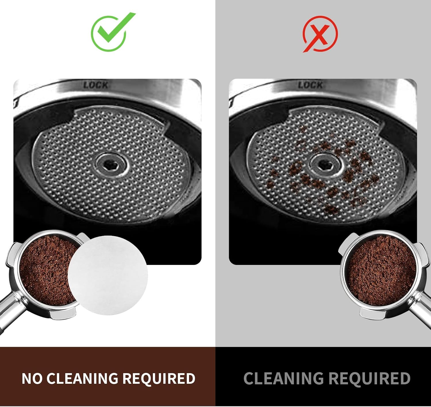 - Compared with the stainless steel ice puck screen, these paper espresso filters no longer need to remove the metal ice puck screen filterfrom the coffee grounds for cleaning. Paper filter is more gentle than stainless steel puck screen, better protects the coffee machine, and extends the service life of the machine.