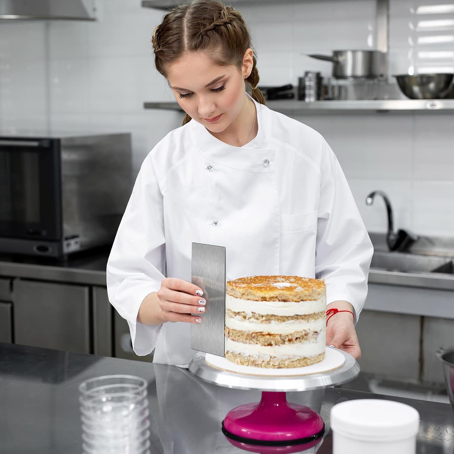 - Reliable and sturdy: this cake scraper smoother is made of stainless steel, no burr or bad smell, thick, durable and safe to use, easy to clean, and reliable materials can serve you for a long time