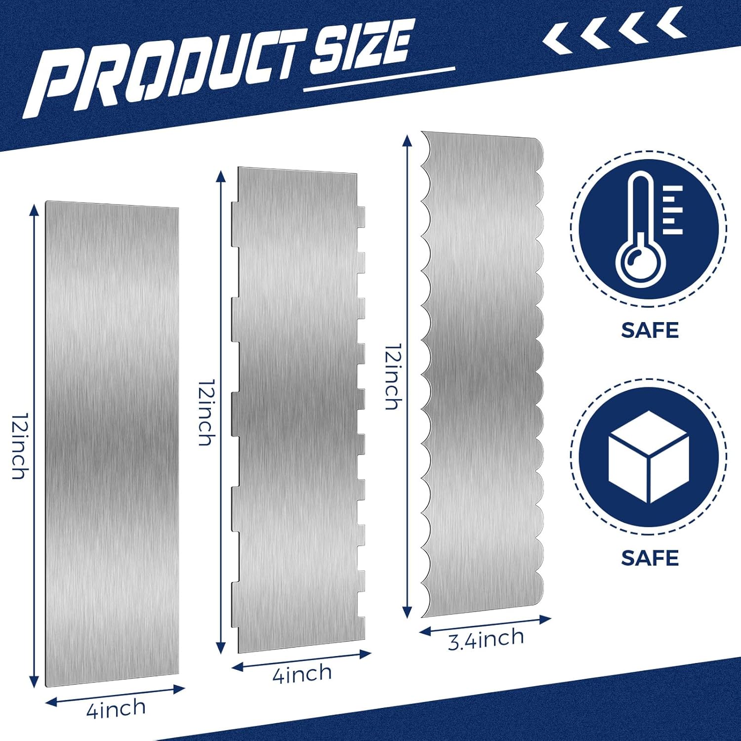 - What you get: these are stainless steel cake scrapers in the package, all of which are about 12 inches in height; There are plenty of different styles and quantities that can be applied and replaced to easily meet your daily cooking and baking needs