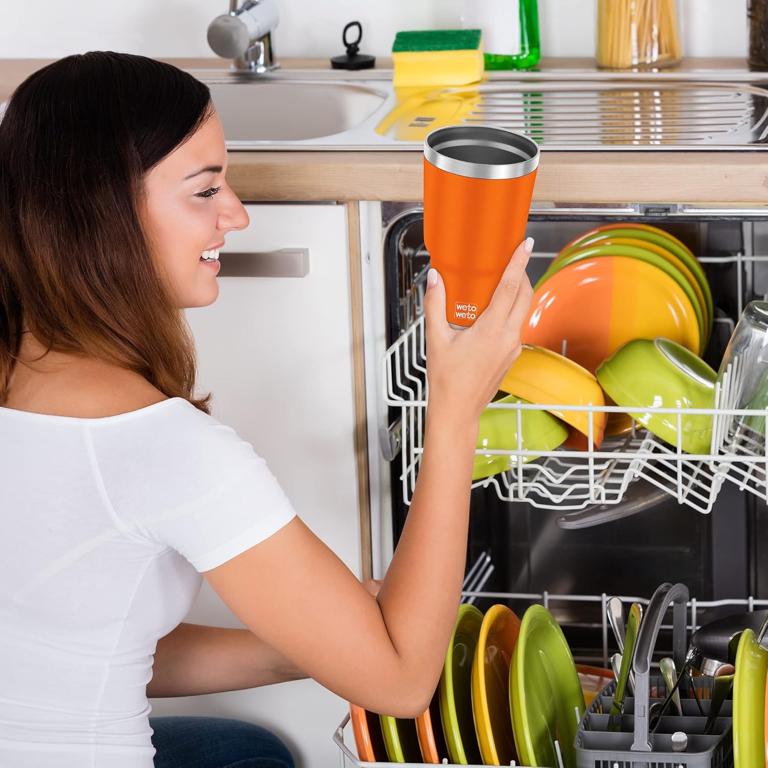 WETOWETO 30oz Tumbler, Stainless Steel Vacuum Insulated Water Coffee Tumbler Cup, Double Wall Powder Coated Spill-Proof Travel Mug Thermal Cup for Home Outdoor (Orange, 1 Pack)