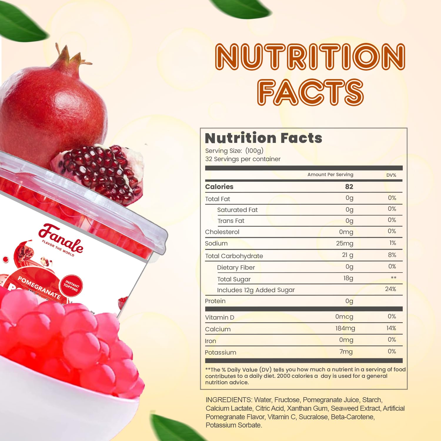 Fanale Pomegranate Popping Boba Pearls, Vegan, Non GMO, Gluten Free, Fat Free, Perfect for Bubble Tea, Smoothies, Ice Cream, Desserts, and Beverages.