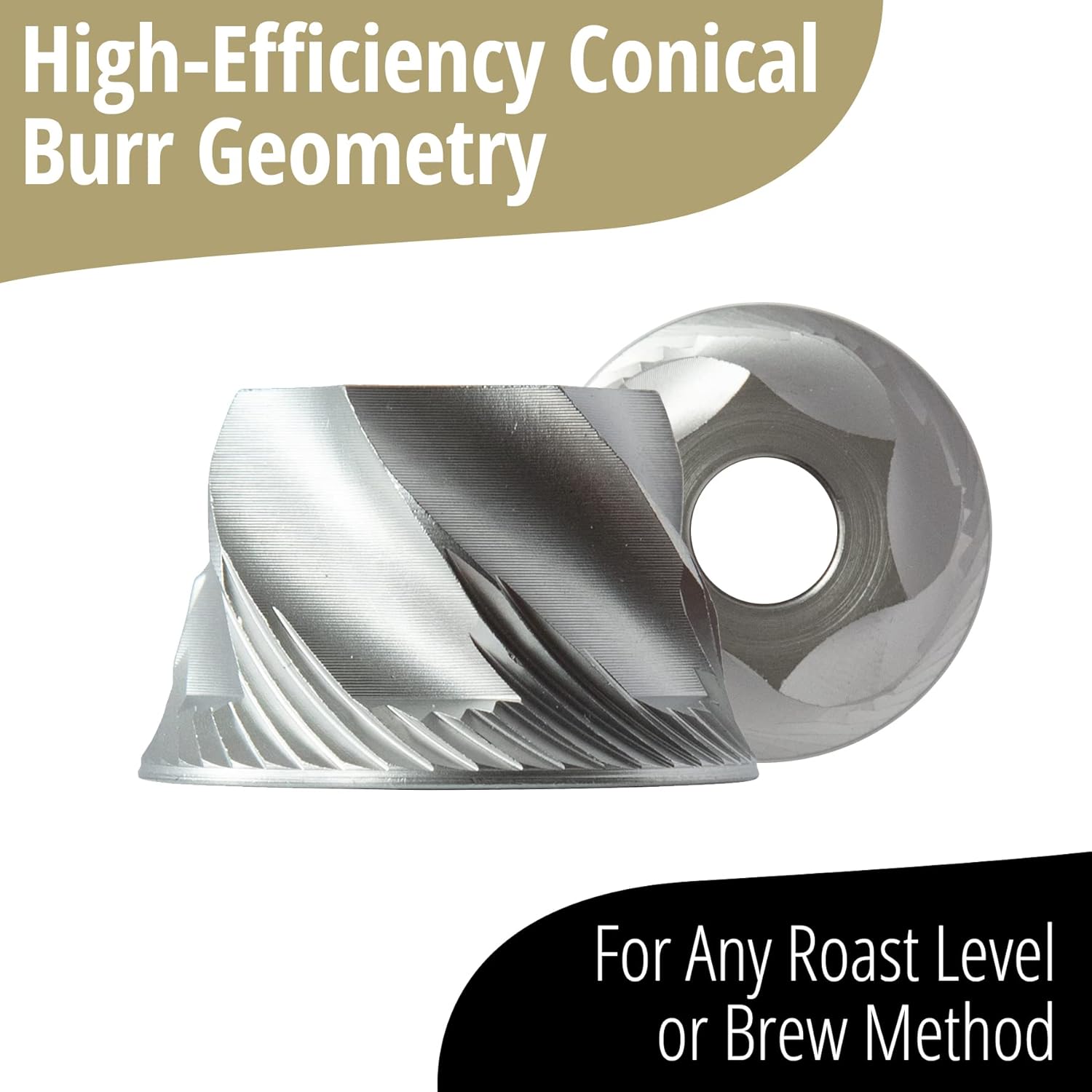 - High-Efficiency Conical Burr Geometry - The Royal hand grinder uses Swiss-made, stainless steel, hardened burrs with an aggressive cut. Meaning your The Royal hand grinder conical burrs will cut through any and all beans.