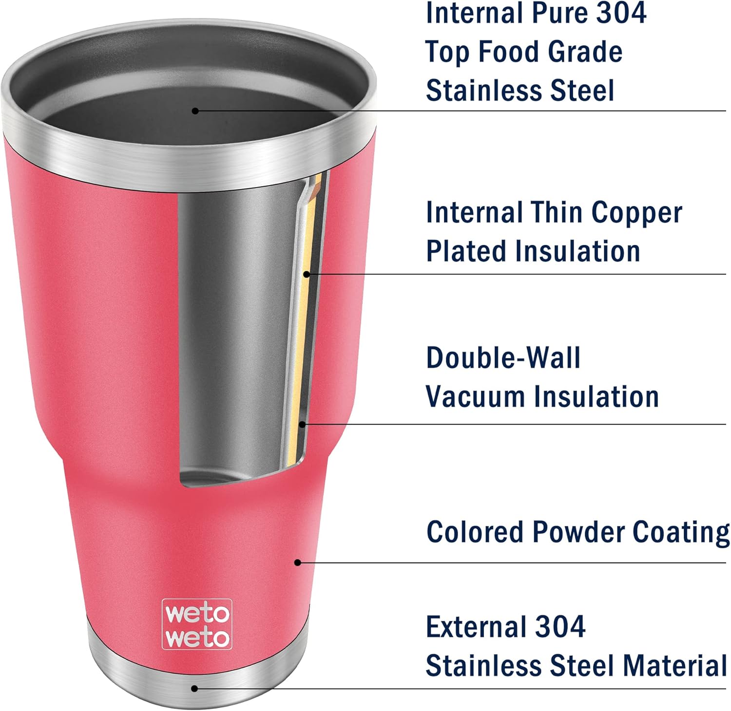 WETOWETO 30 oz Tumbler Stainless Steel Vacuum Insulated Coffee Ice Cup Double Wall Vacuum Coffee Tumbler for Hot and Cold drinks, Suitable for Beach, Travel, Party(Watermelon Red, 1 Pack)