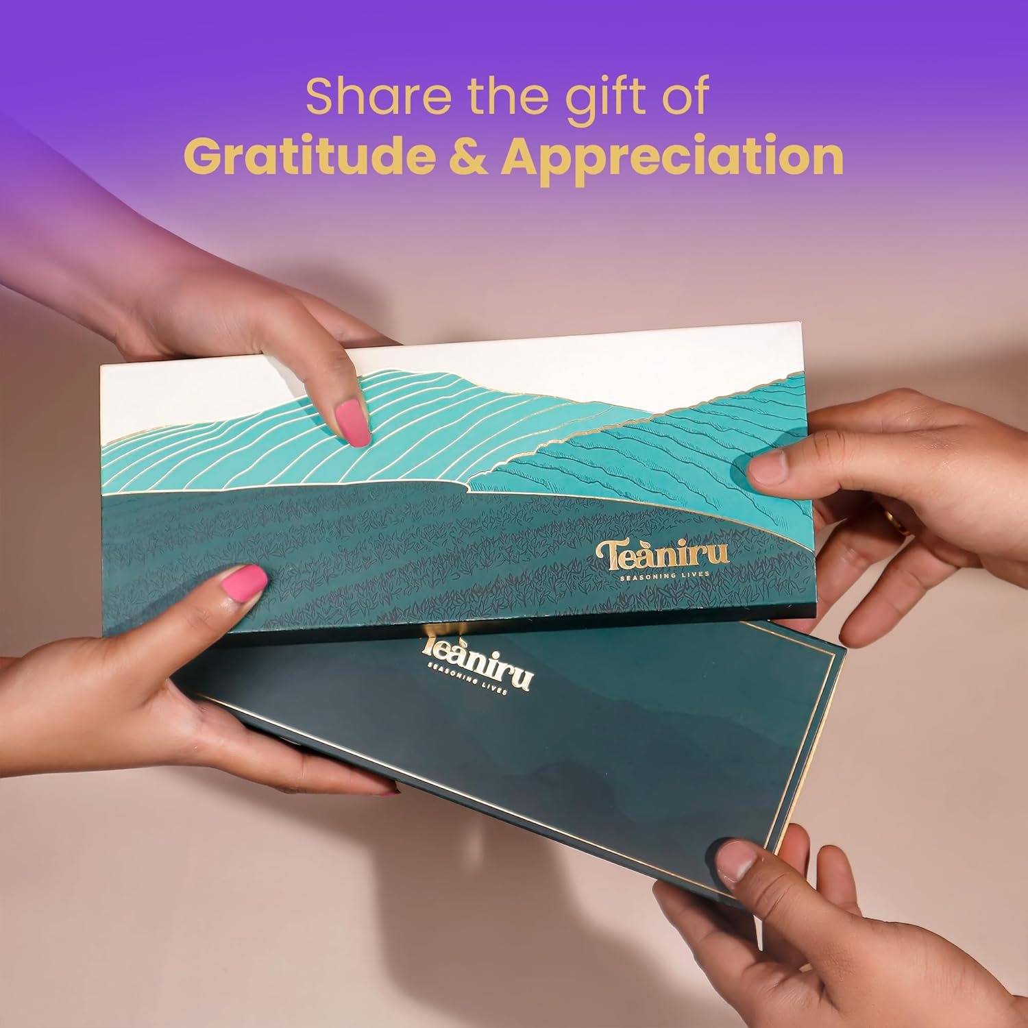 - FLAVORS WITH BENEFITS: An exotic tea gift set that combines vibrant flavors of Apple Cinnamon for everyday Energy, Rose Lemon for Relaxation, Rooibos Orange for Heart Health, Kashmiri Kahwa for Digestion, Winter Spice for Good Sleep, and Turmeric Masala Tea for Immunity. This exquisite tea sampler gift set, presented in a luxurious gift box is impeccably designed to gift your beloved ones.