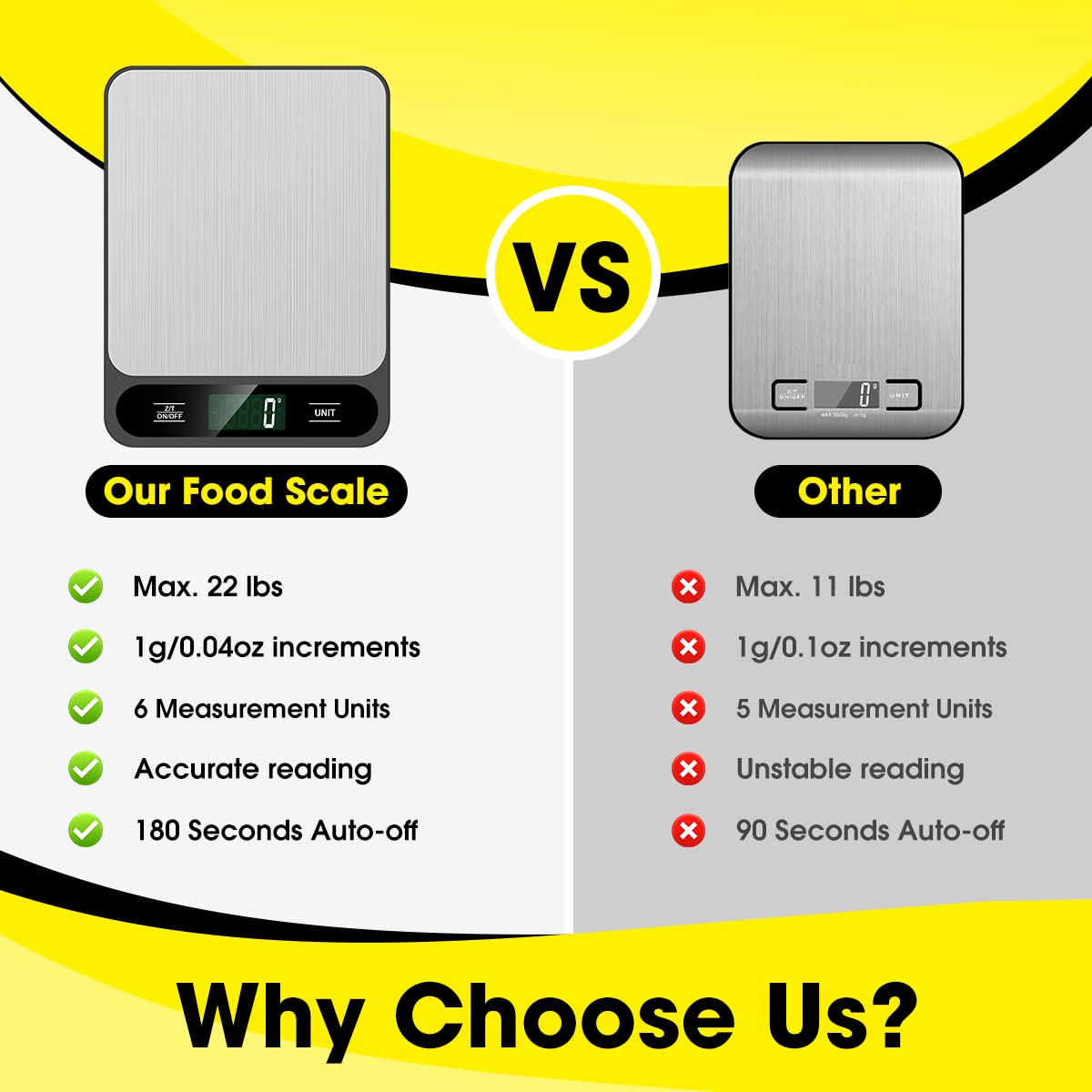 - 【Precise Weight】 10kg/22lb capacity, 1g/0.1oz resolution, Great for cooking, baking, weight loss, Meal Prep, Coffee, Package, Postage.