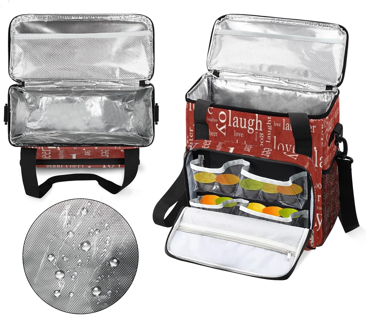- ☕ WATERPROOF & DURABLE: The Love Joy Laugh Letter Red coffee maker travel storage bag is made of durable polyester oxford cloth, food grade aluminum foil without bisphenol A, and 5mm thick padded pearl foam lining are used, which are waterproof and wear-resistant, delicate reinforced stitching and smooth zipper, durable and long lasting. Easy to clean by hand, and reusable. The Love Joy Laugh Letter Red coffee maker carrying case can also be used to keep food cold/hot.