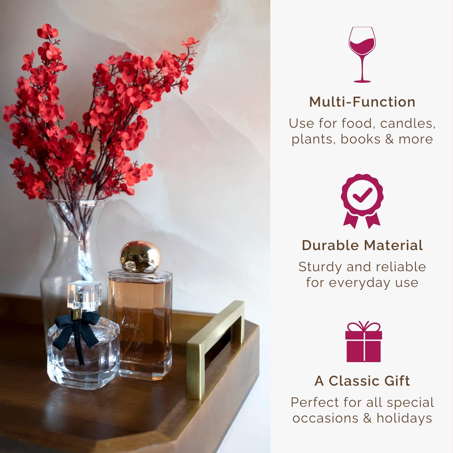 - ✅ MULTIFUNCTIONAL DESIGN: This versatile wooden tray offers endless possibilities for use. Serve refreshments to your guests in style, or create a chic display of candles, books, or decorative items. With its generous size and raised edges, our Ottoman Tray provides a steady surface for carrying and serving items, minimizing spills and messes.