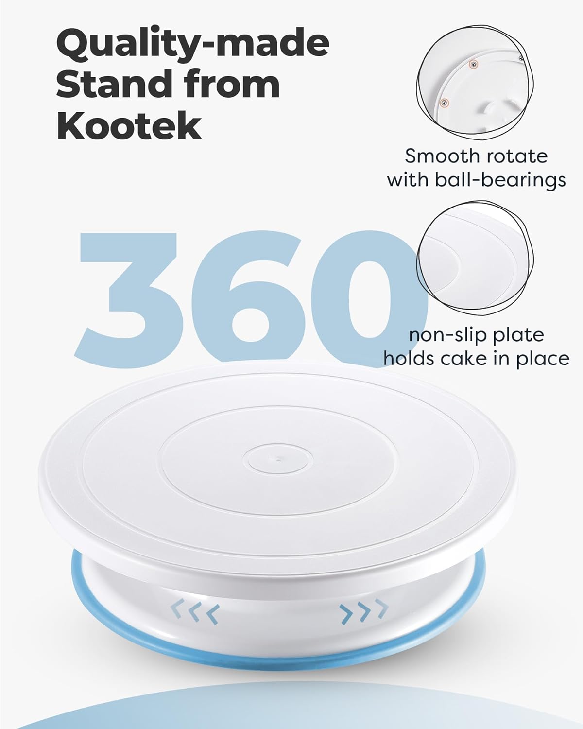 • 360° Spinning Cake Turntable: This essential baking supplies tool features a cake stand with an 11-inch diameter that spins smoothly on a hidden ball bearing, allowing you to achieve stunningly consistent patterns and gorgeous designs. With 360º clockwise and counterclockwise rotation, you can decorate cakes like a pro.