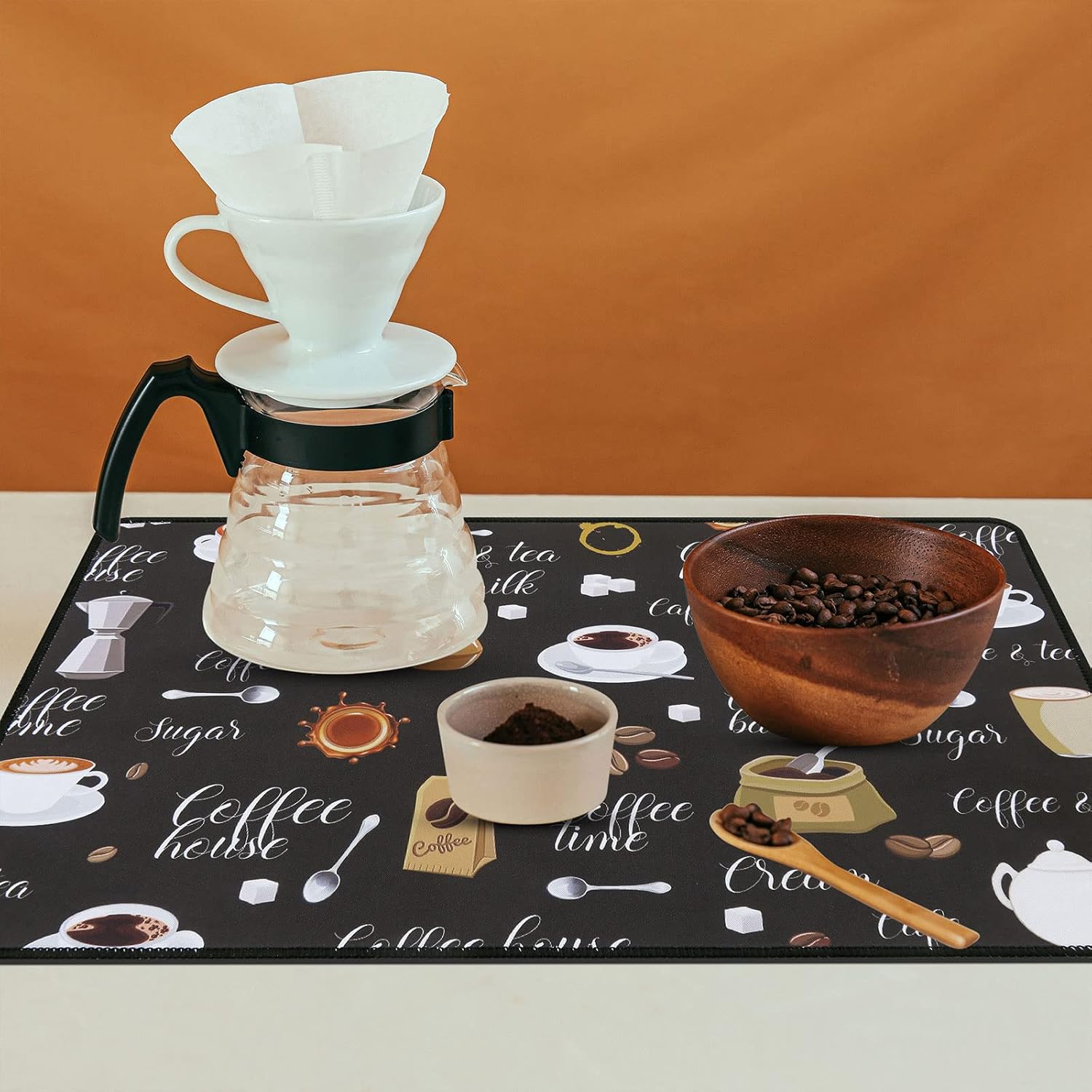 - Easy to clean: The coffee bar mats for countertop has no need to clean frequently. They can be cleaned with soap to remove stains, and then dried and reused. But do not bleach