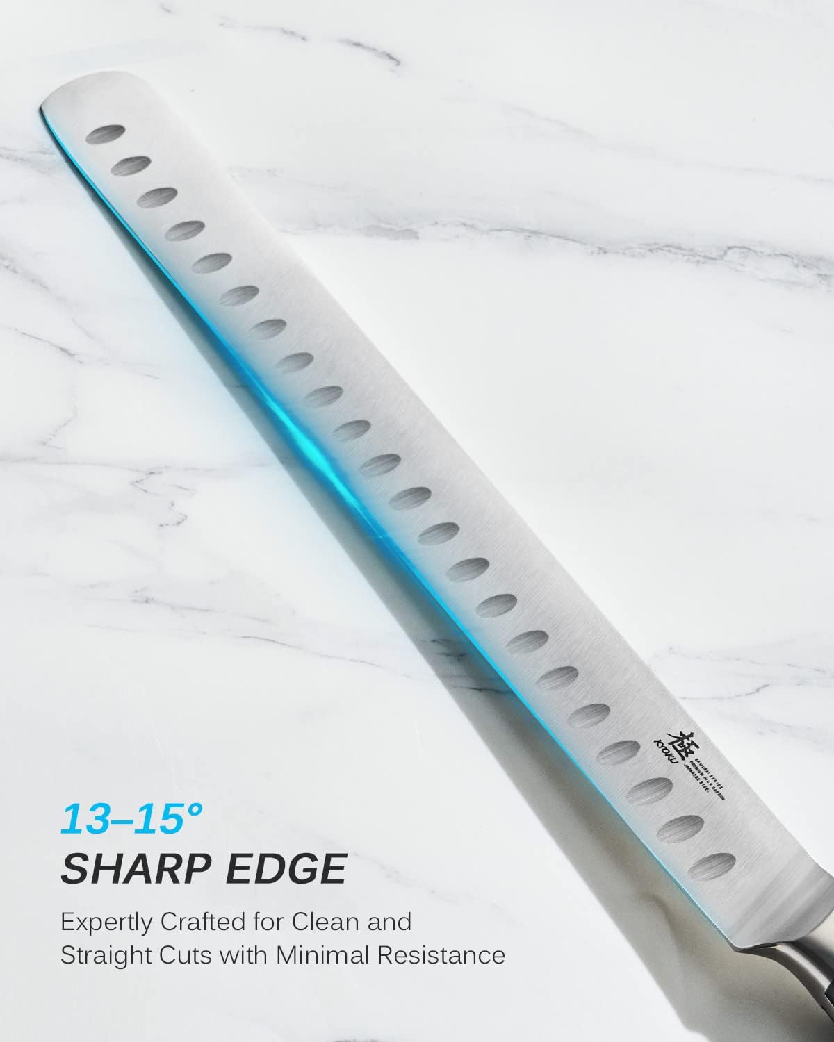 - Razor Sharp Blade: This meat carving knife's ultra-sharp blade is precisely honed to 13-15 degrees, making it perfect for slicing hams, ribs, roast beefs, briskets, and prosciutto, while the dimples prevent food from sticking.