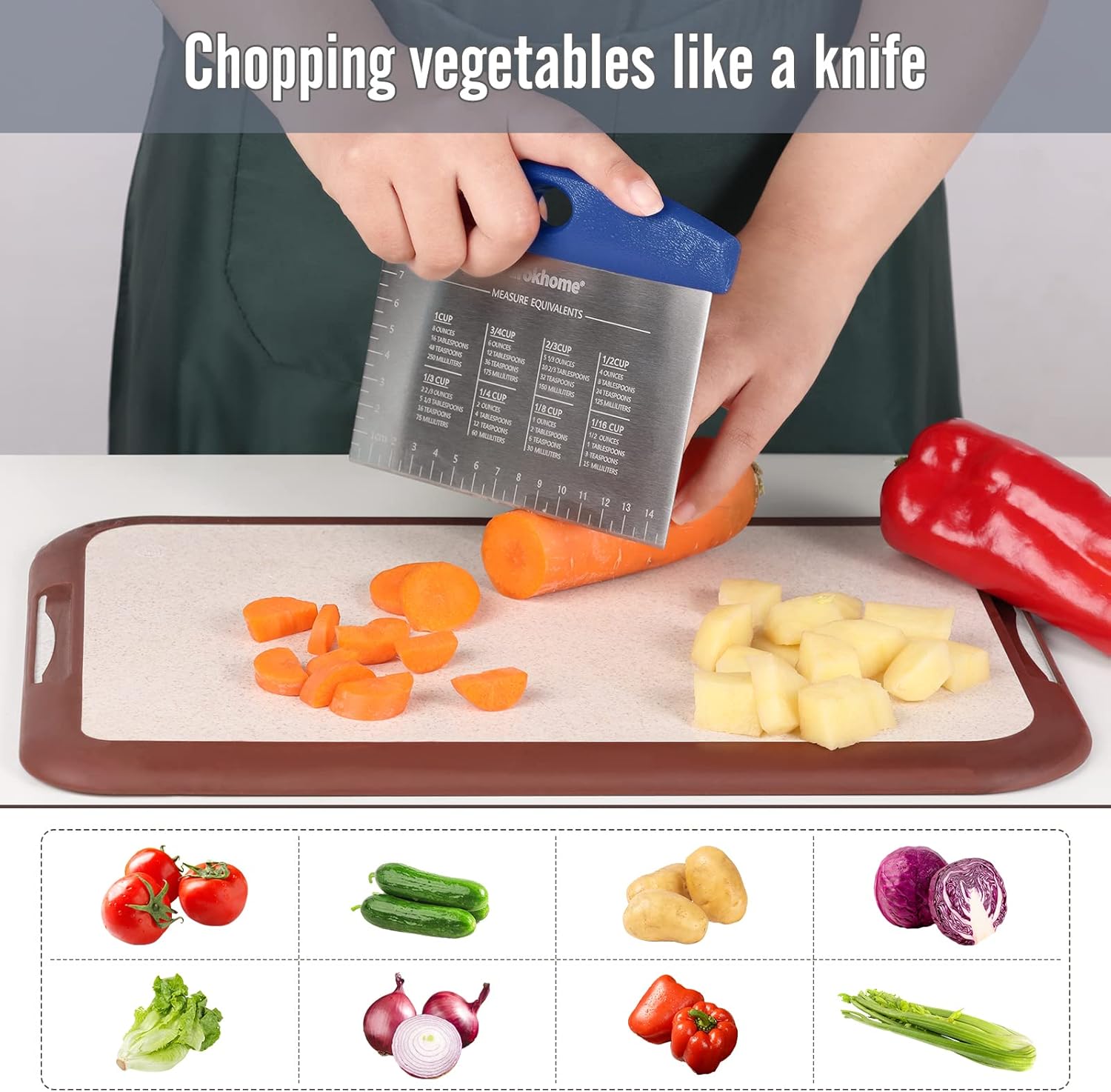 - Multipurpose dough scraper: Whether youāre dividing pastry dough, slicing pizza, chopping even the hard veggies, smoothing cake, or scooping up chopped veggies from the board, it can complete tasks like a charm