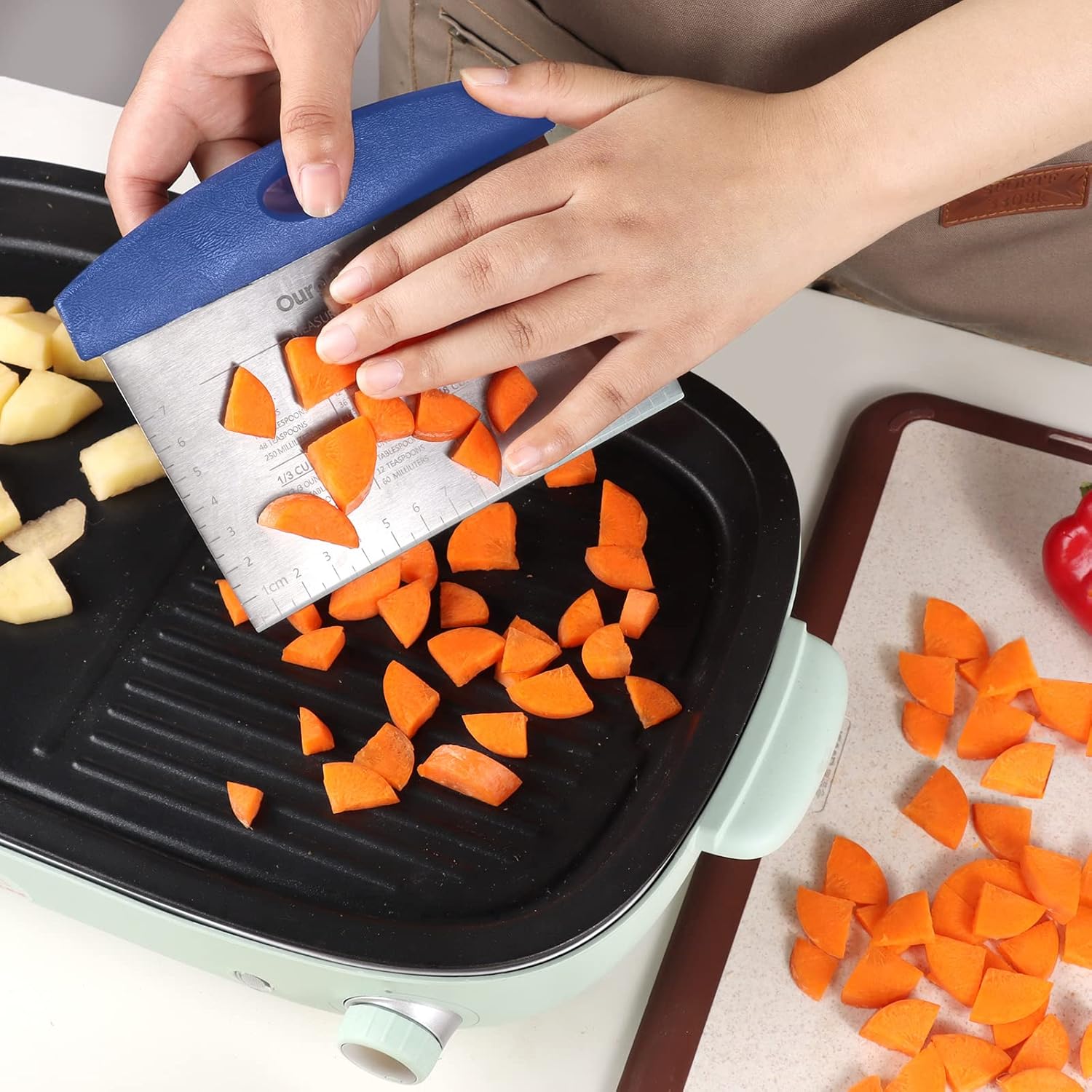 Ourokhome Dough Pastry Bench Cutter Scraper, Stainless Steel Pizza Cutter for Kitchen Baking, Dishwasher Safe, Anti-Wear Laser-Engraved Measuring Scale and Conversion Chart, 2 Pack, Blue