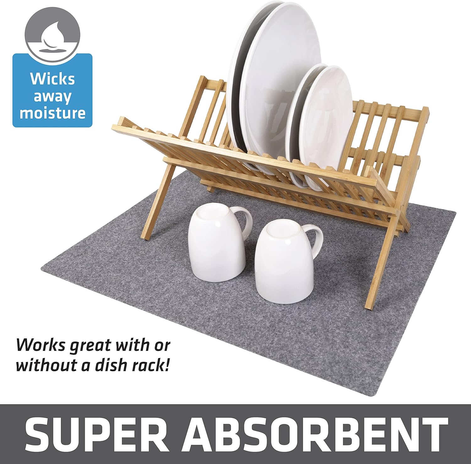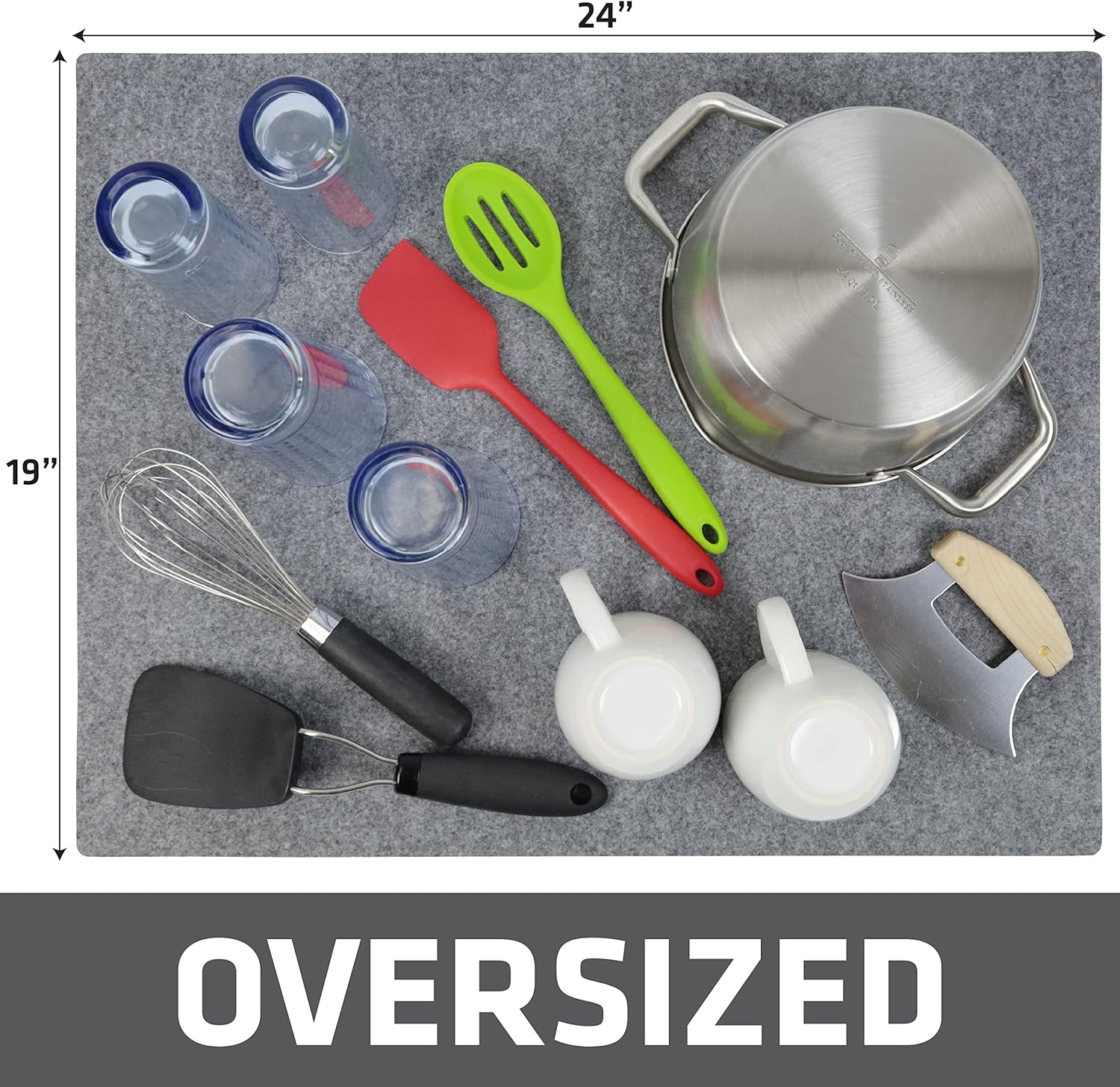 - (XL SIZE) KEEPS COUNTERTOPS CLEAN AND DRY (PREMIUM LOW-PROFILE DESIGN): The low-profile design (0.13” thick), adds stability when drying stemware or other delicate items and allows moisture to evaporate quickly. The XL size is great for air-drying dishes, glasses, silverware, pots, pans, and fruits and vegetables.