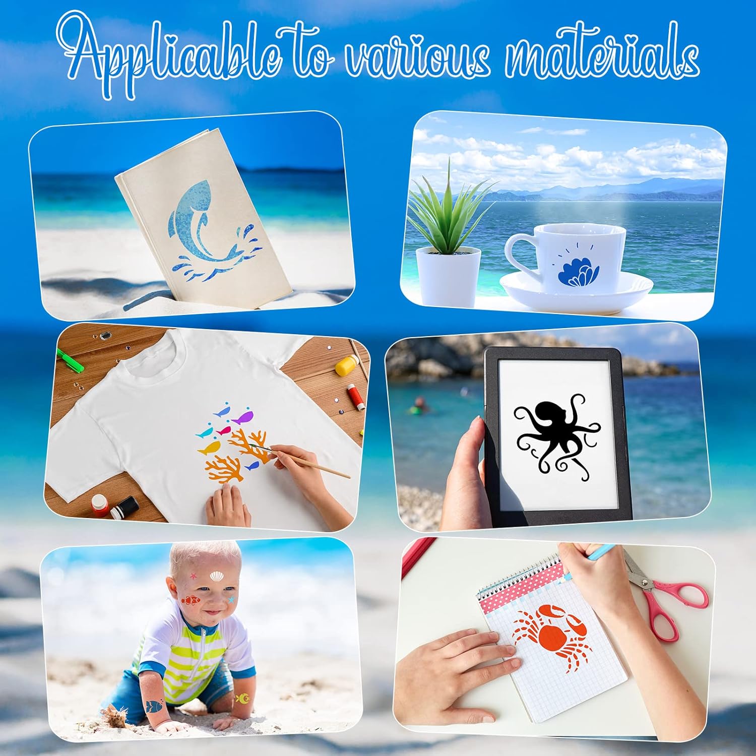 - Reliable Material: our marine life stencils are made of quality PET material, solid and reliable, not easy to break, fade, rust or deform, washable and reusable, easy to clean and can be applied for a long time