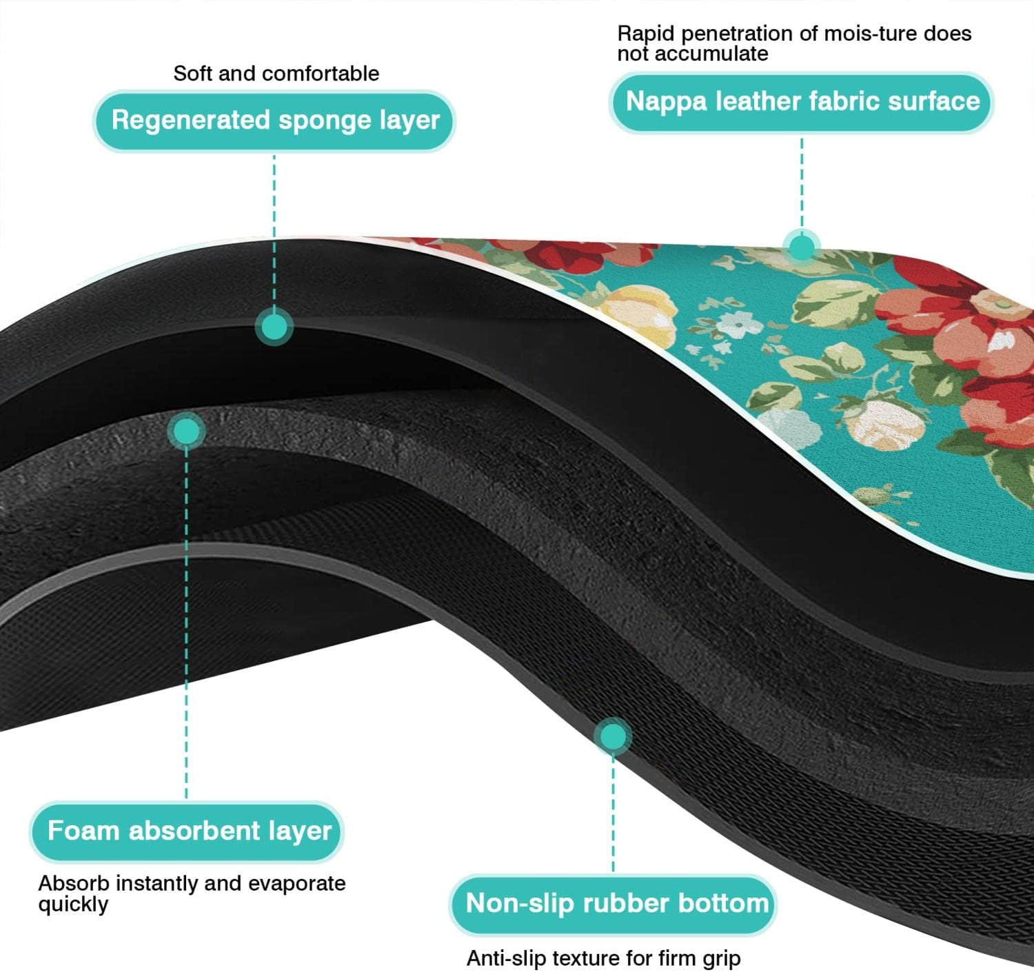 Rubber Dish Drying Mat for Kitchen Counter Large Boho Flowers Washable Quick Home Coffee Pad Fit Under Sink,Bar,Utensils 16x18in