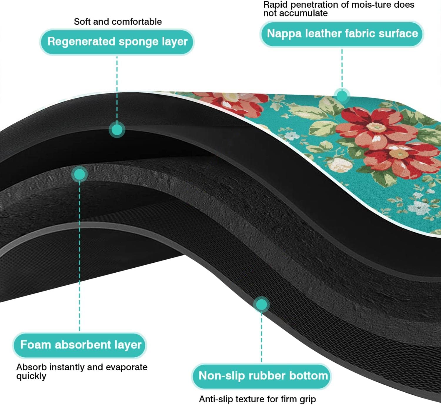 Rubber Dish Drying Mat for Kitchen Counter Large Boho Flowers Washable Quick Home Coffee Pad Fit Under Sink,Bar,Utensils 18x24in