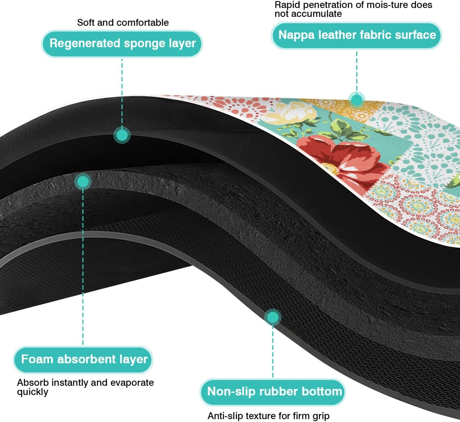 Rubber Dish Drying Mat for Kitchen Counter Large Boho Flowers Washable Quick Home Coffee Pad Fit Under Sink,Bar,Utensils 18x24in
