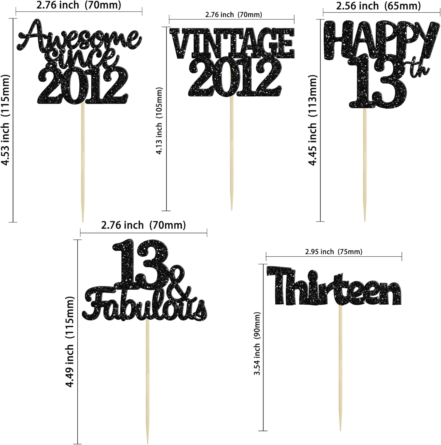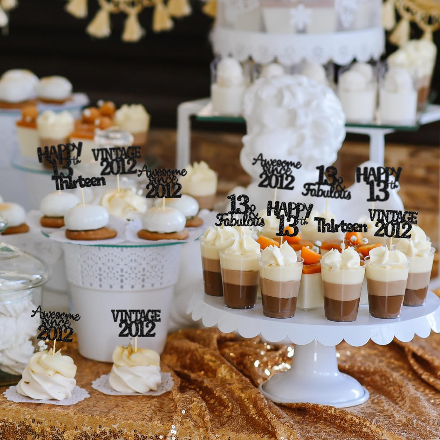 Gyufise 30Pcs Vintage 2012 Cupcake Toppers Glitter Thirteen Happy 13th Cupcake Picks Happy 13th Birthday Cake Decorations for Happy 13th Birthday Anniversary Party Supplies Black