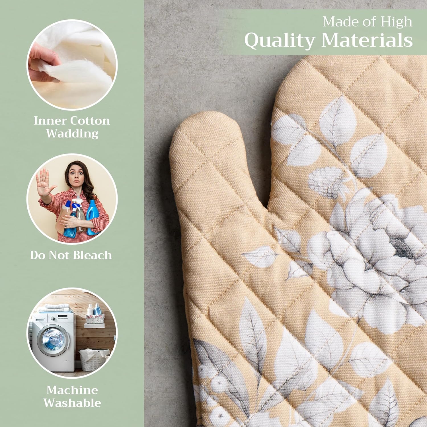 - 100% Quilted cotton: Crafted from thick, durable quilted cotton, this heat resistant oven mitt provides a soft feel, safe handling, and lasting performance. A must-have kitchen accessory for everyday cooking, roasting, or baking tasks