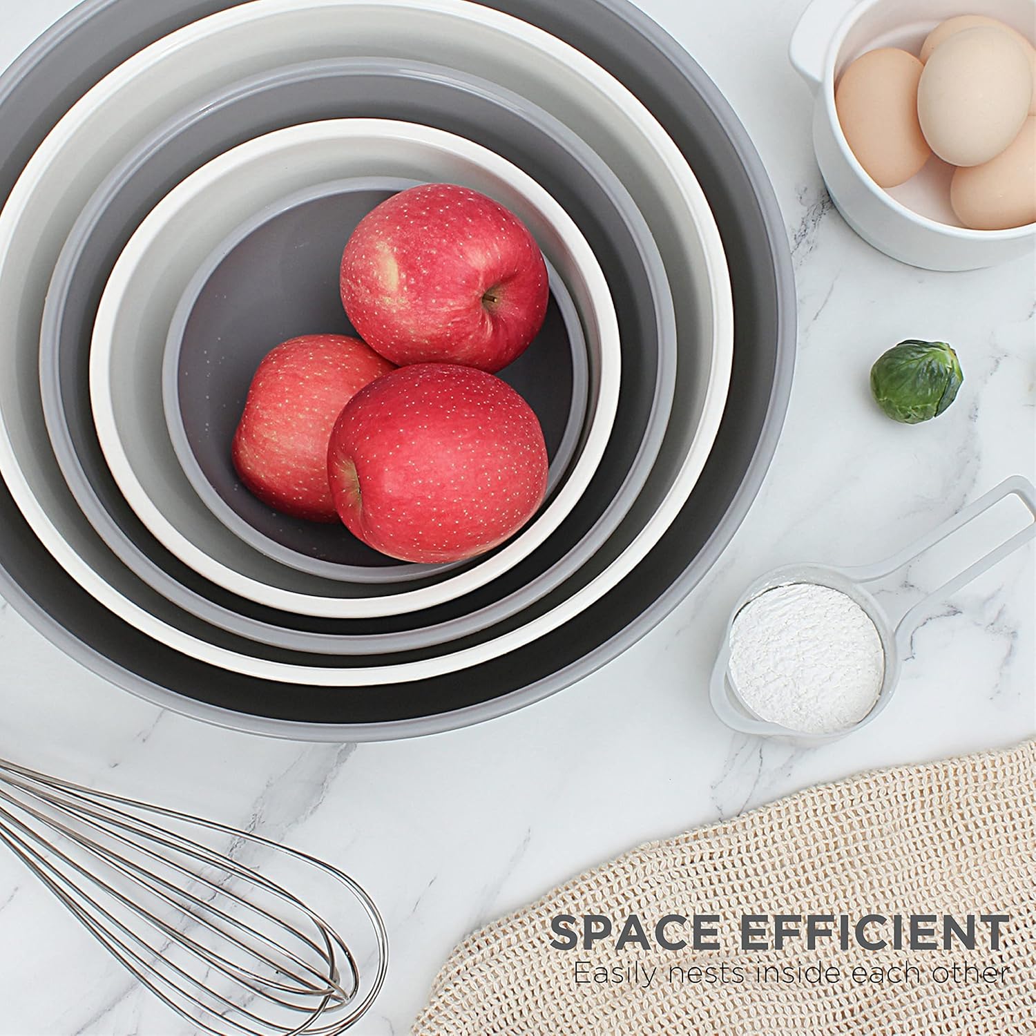 Rae Dunn Mixing Bowls with Lids - 10 Piece Plastic Nesting Bowls Set includes 5 Prep Bowls and 5 Lids (Grey)