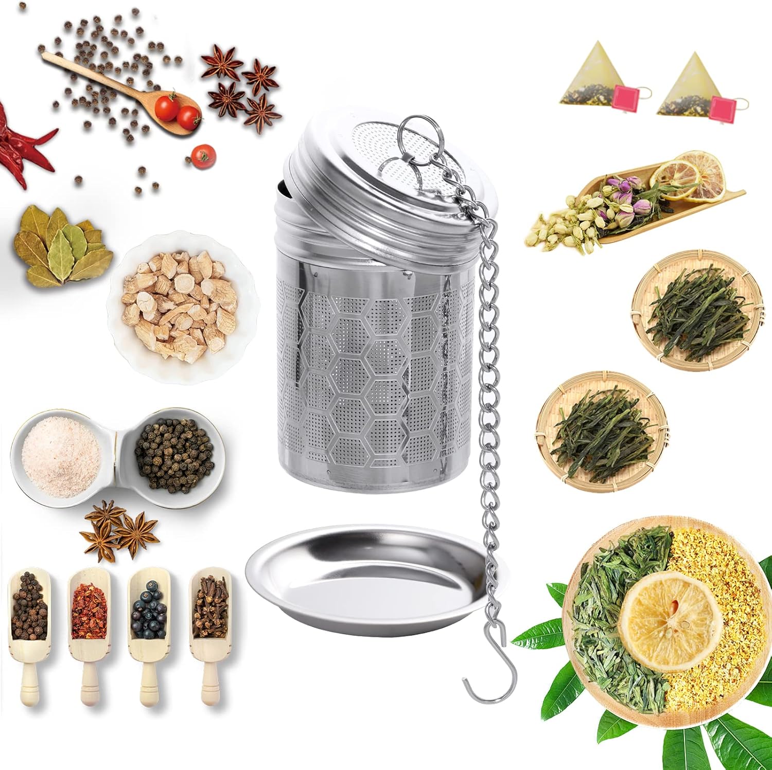 2 Pack Tea Strainers Infuser for Loose Tea 304 Stainless Steel Mesh Loose Leaf Steeper Diffuser with Chain Hook and Threaded Lid for Black Tea, Spices and Seasonings