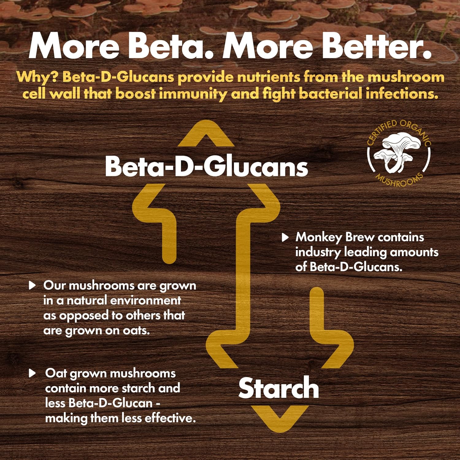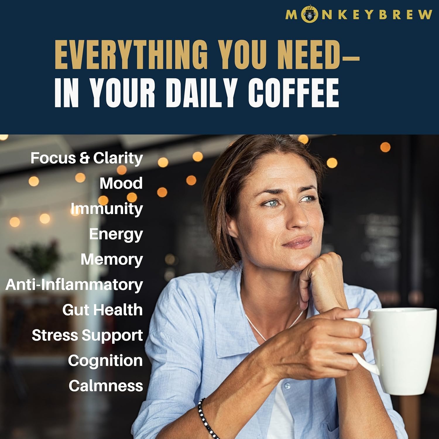 Monkey Brew Original - USDA Organic Mushroom Tea Drink - Non-Caffeinated Mushroom Coffee Alternative with Cacao Powder, Lion's Mane, Turkey Tail, Ashwagandha, Turmeric - Boosts Energy Focus & Immunity
