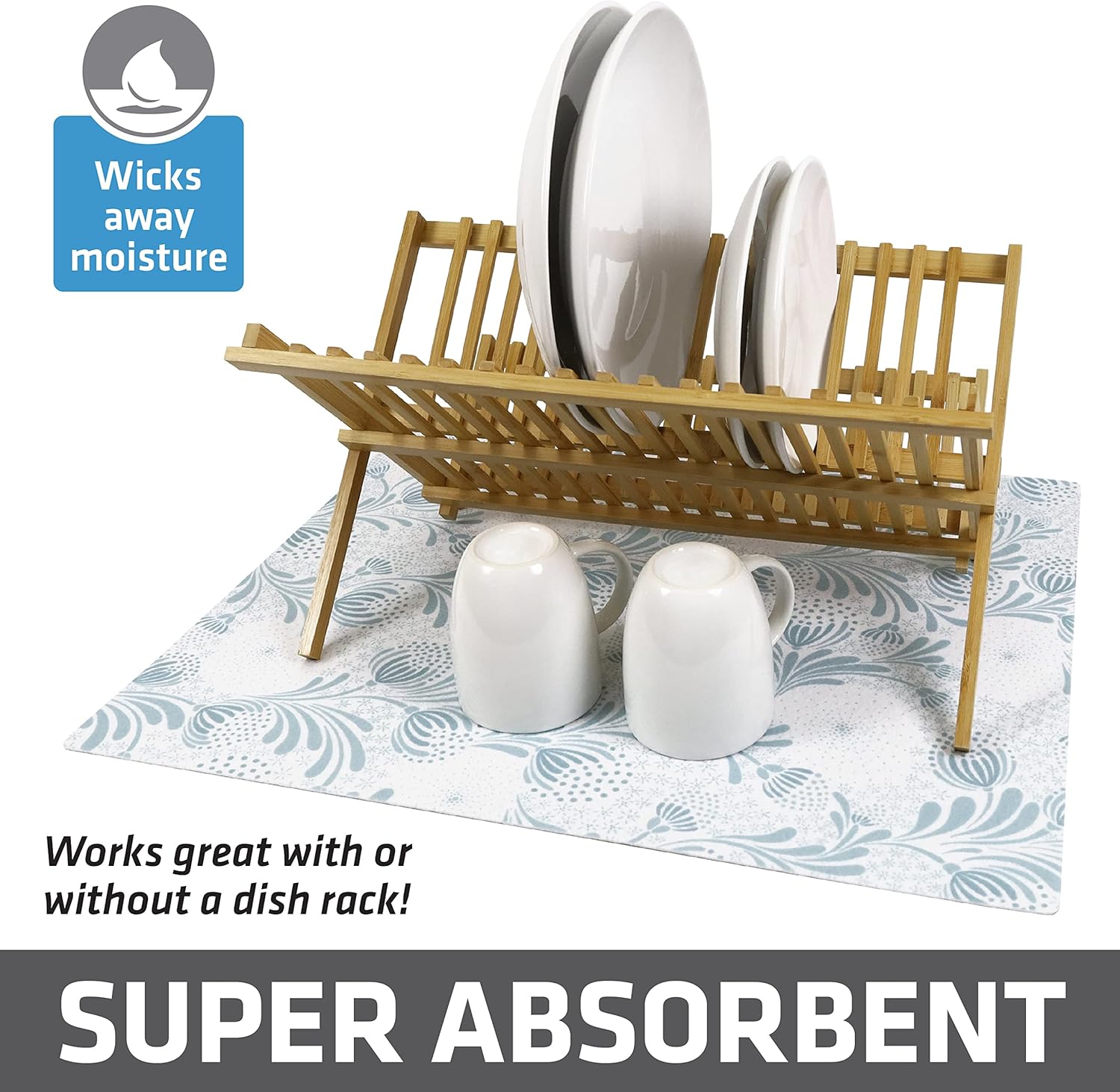 - (XL SIZE) KEEPS COUNTERTOPS CLEAN AND DRY (PREMIUM LOW-PROFILE DESIGN): The low-profile design (0.13” thick), adds stability when drying stemware or other delicate items and allows moisture to evaporate quickly. The XL size is great for air-drying dishes, glasses, silverware, pots, pans, and fruits and vegetables.
