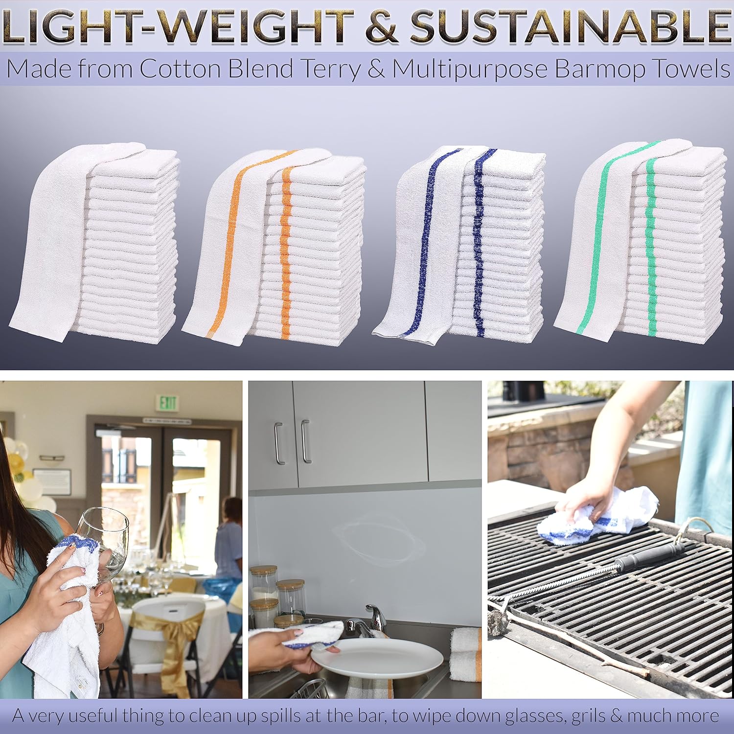 - Economy Grade: The terry cleaning cloth towels are affordable and wonāt leave any burden on your wallet. For businesses, it would become the number one choice with an economic and distinctive features. The sturdy and absorbent terry white bar towels are for use in bars, kitchens, restaurants, hotel, school collage, office and other places for cleaning. Please Note this is not a premium bar mop even If you are unsatisfied with your purchase at any point and for any reason, you can contact us.