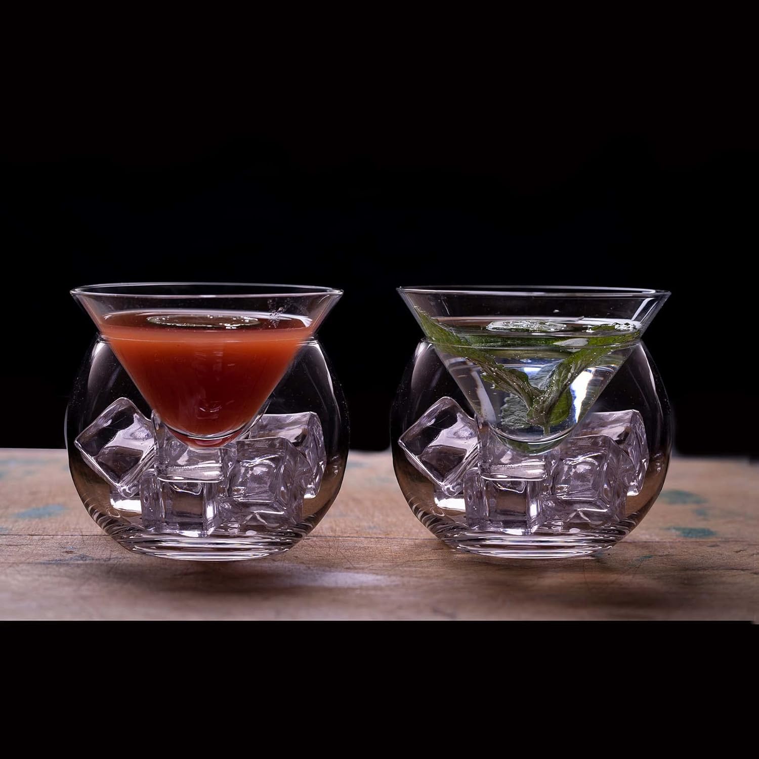 LEMONSODA Stemless Martini Glasses with Chiller - Set of 4 - Elegant Cocktail Glass Set with Server Bowl - Martini Gift Set for Margarita, Espresso Martinis, Manhattan Cocktails - Housewarming Gifts