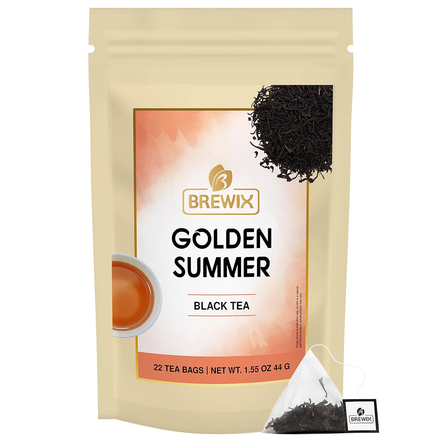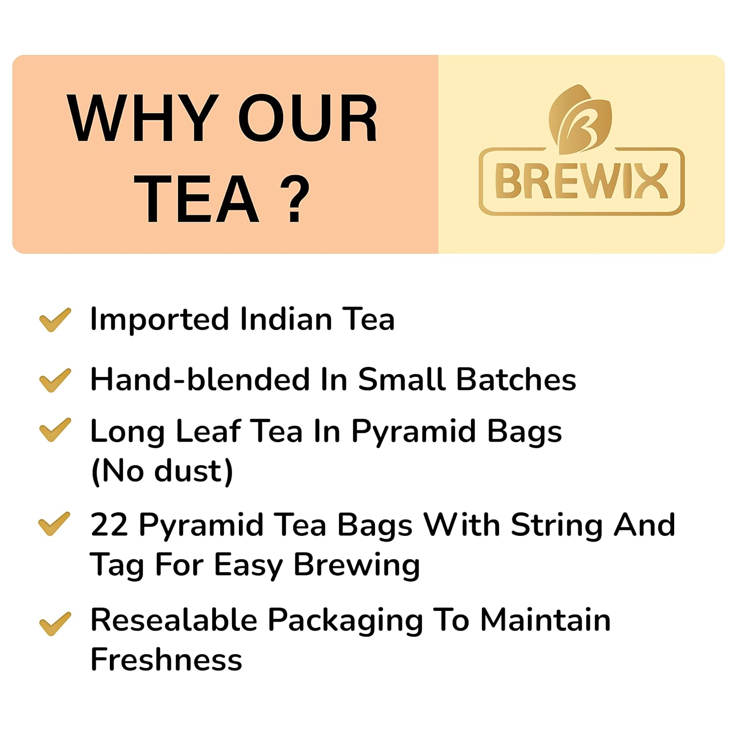 BREWIX, Darjeeling Golden Summer Tea From Himalayas (22 Pyramid Tea Bags) | High Grown in the Himalayas | Long Leaf Tea, Packed in Resealable Ziplock Pouch