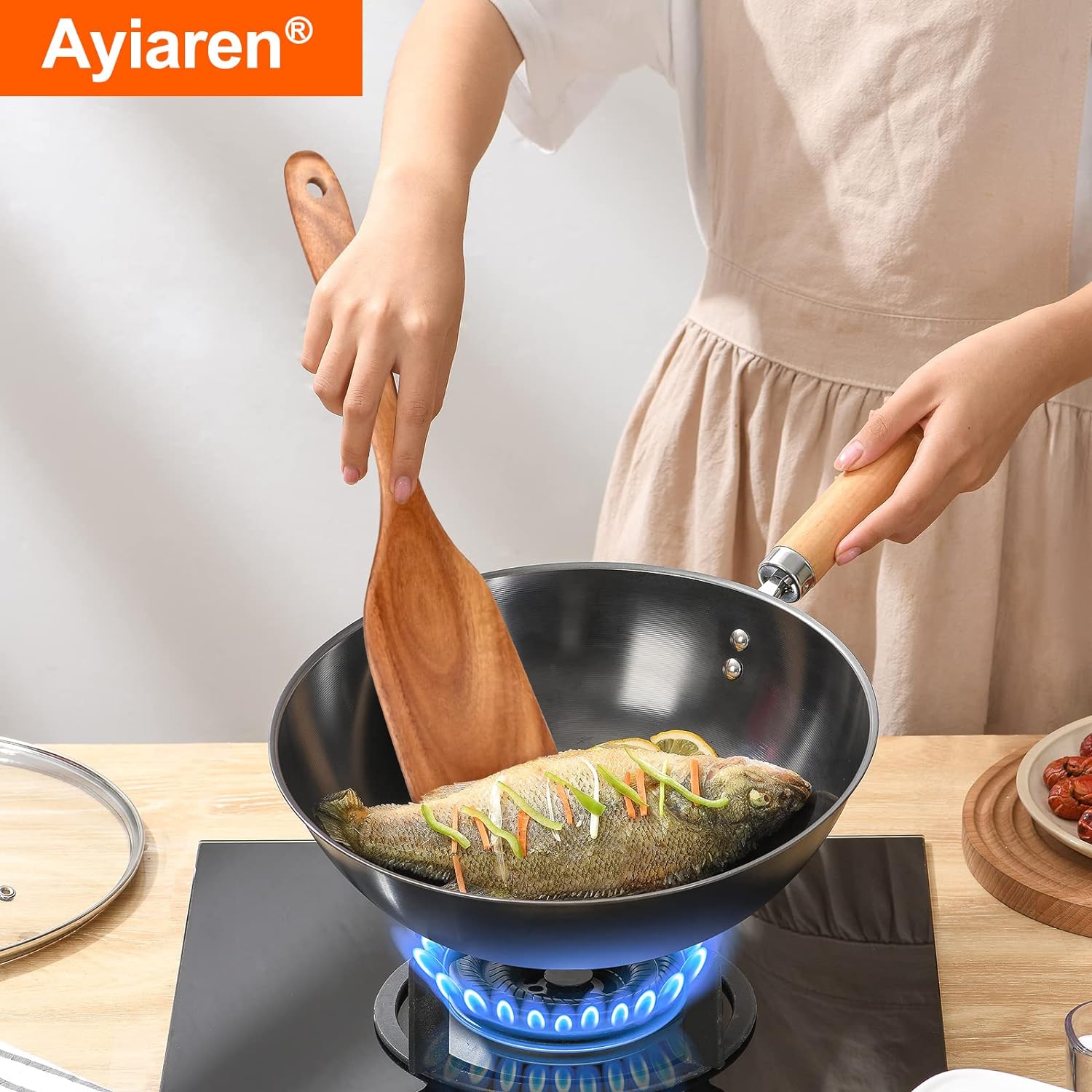 Best Non Toxic Wooden Spatula for Cooking Utensils Set Wood Spurtle Flat Spatulas for Kitchen Use Tools Teak Utensils Slotted Turner Bamboo Cooking Spoons Egg Utensil Cast Iron Scraper Thin Spatula