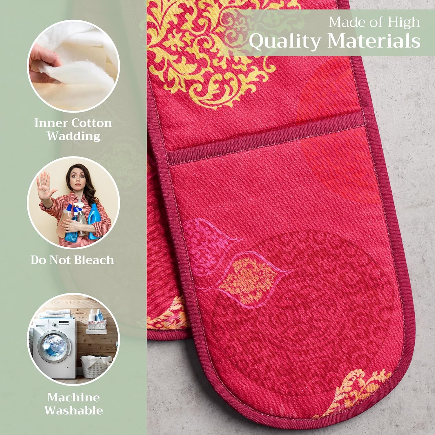 - 100% Quilted cotton: Crafted from premium quilted cotton for superior heat resistance and durability. This double oven mitt offers a soft, flexible grip and protects your hands during baking, roasting, or grilling