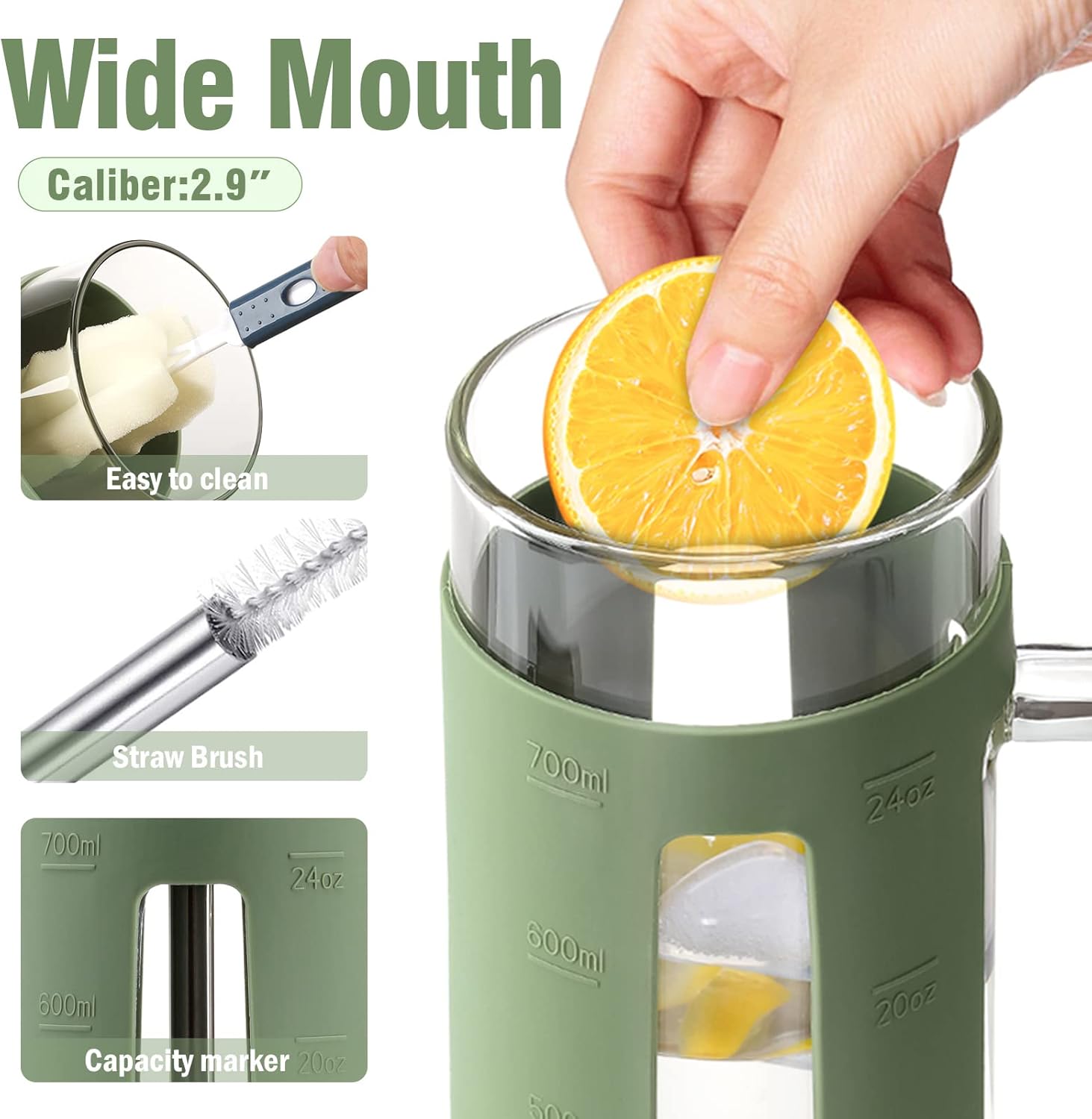 - GOOD FOR HOME AND OFFICE - Glass Coffee Tumbler with silicone sleeve provides stronger grip and helps prevent breakage, very suitable for drinking coffee in the office. It can also serve as the perfect smoothie cup, DIY drinks tumbler, wine tumbler, water tumbler at home or on the go. Perfect for office, home, school, fitness, or outdoor activities. This tumbler with handle and straw must be a thoughtful gift that will make your family, friends and colleagues happy and smile.