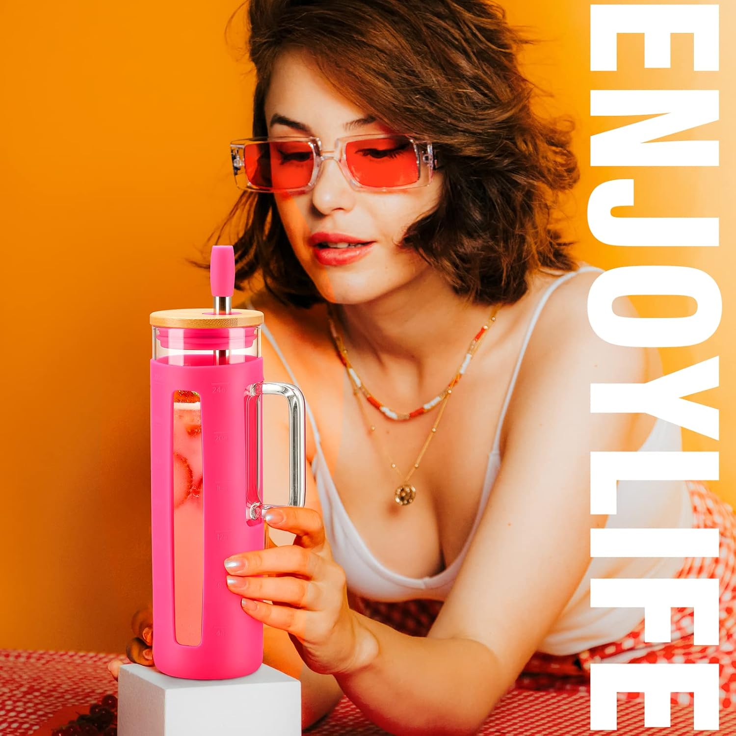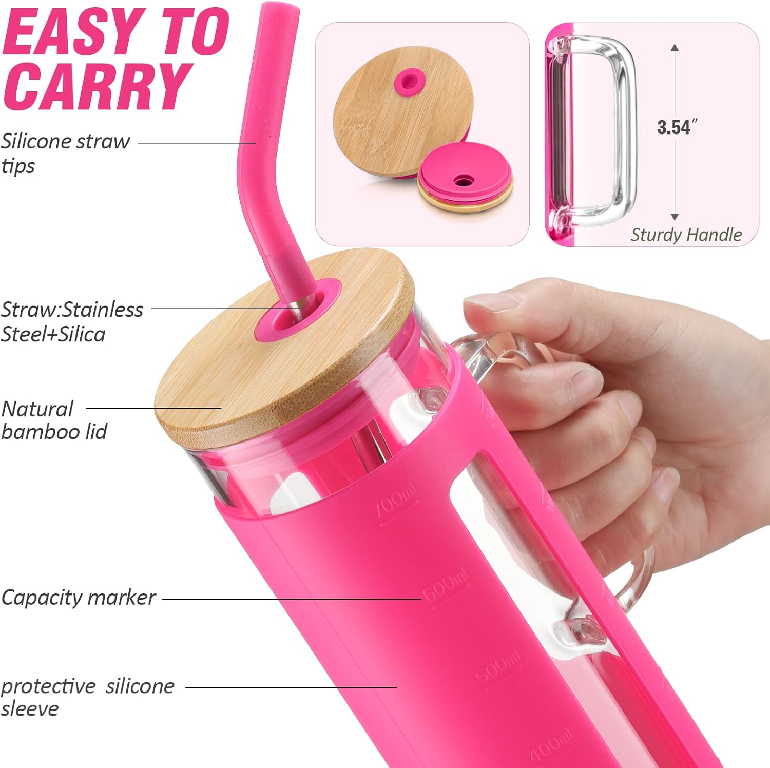 - GOOD FOR HOME AND OFFICE - Glass Coffee Tumbler with silicone sleeve provides stronger grip and helps prevent breakage, very suitable for drinking coffee in the office. It can also serve as the perfect smoothie cup, DIY drinks tumbler, wine tumbler, water tumbler at home or on the go. Perfect for office, home, school, fitness, or outdoor activities. This tumbler with handle and straw must be a thoughtful gift that will make your family, friends and colleagues happy and smile.