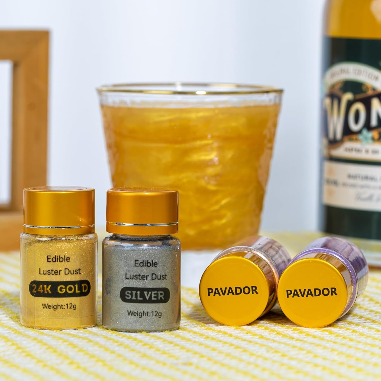 - Easy to Use - Metallic shimmer is easy to mix on your food project,both beginners and professionals can enjoy the fun of DIY desserts and drinks.Just brush dry onto your foods directly,but please do not mix it with water or it will be clumpy