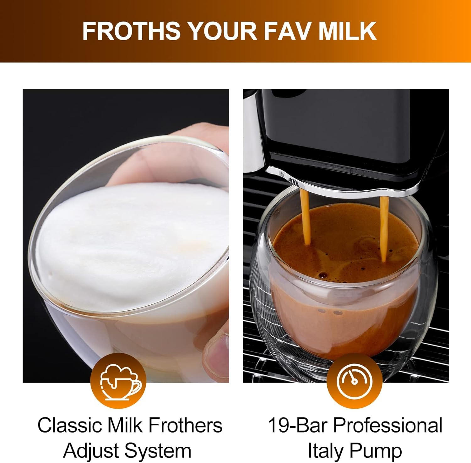 - ☕ Automatic Microfoam Milk Texturing:The high-tech software allows you to customize the amount of coffee, temperature, and hot milk foam settings laid out in a user-friendly interface and Touch screen perfect for all customers Auto steam wand allows you to adjust the milk temperature and texture to suit your taste; Delivering barista quality micro foam that enhances the flavor of the coffee and is essential for creating.
