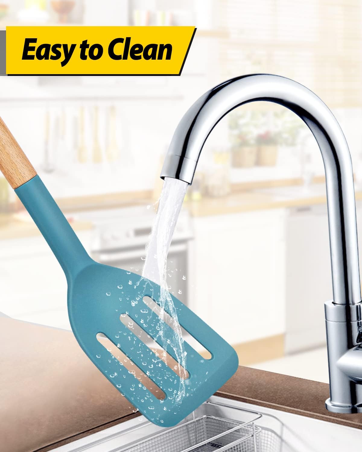 - Thoughtful Design : The good-quality 18/8 stainless steel keeps you away from the trouble of kitchen utensils rusting or breaking; This anti-scald silicone handle is not easy to conduct heat and is more comfortable to hold than traditional utensils