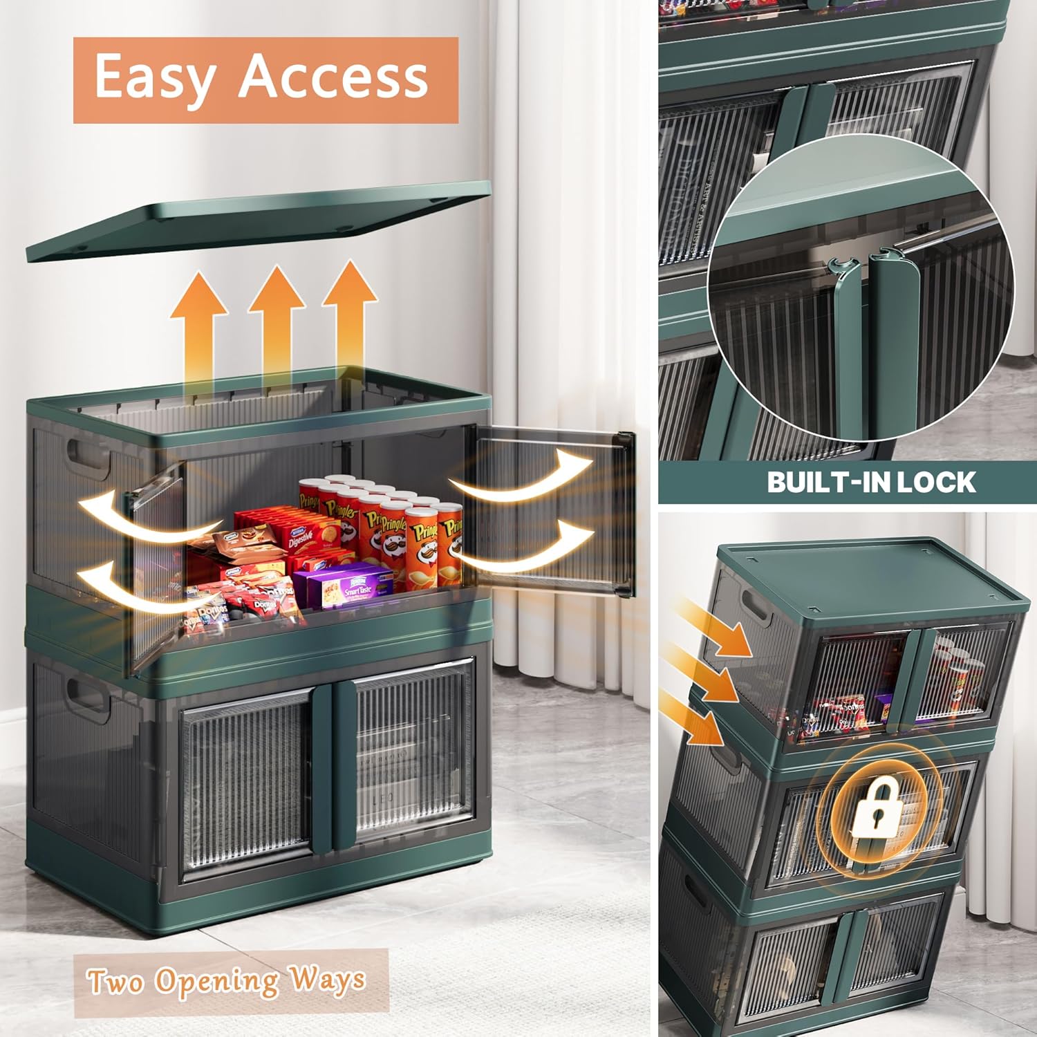 - Quick Access & Security: Clear doors let you see contents instantly, open-front design allows effortless item retrieval. Additionally, the built-in lock clasp prevents accidental opening during transport