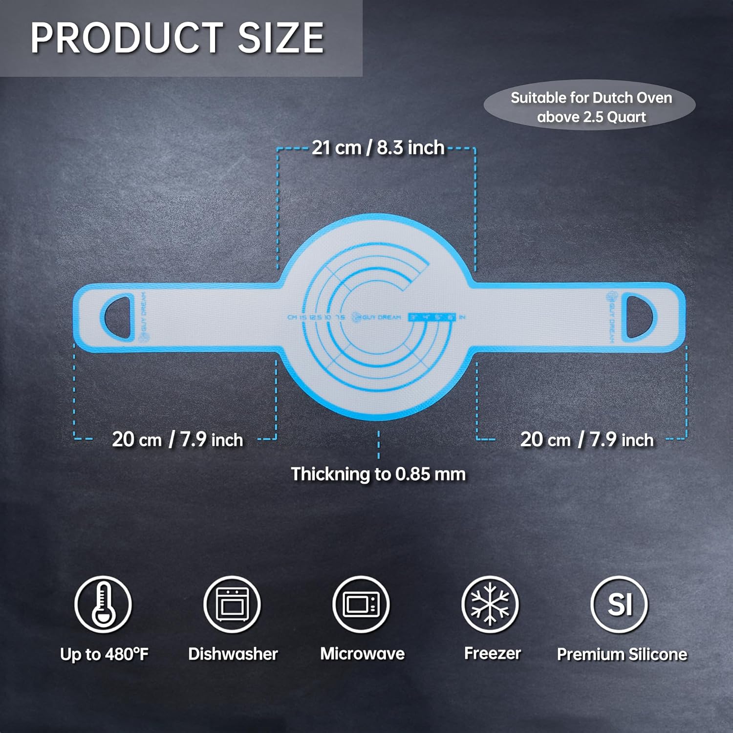 - 【ULTRA THICK】The thickness of GUY DREAM mats are 0.85 MM. They are 30% thicker than our classic models, and they are twice as thick as other dutch oven mats in the market.