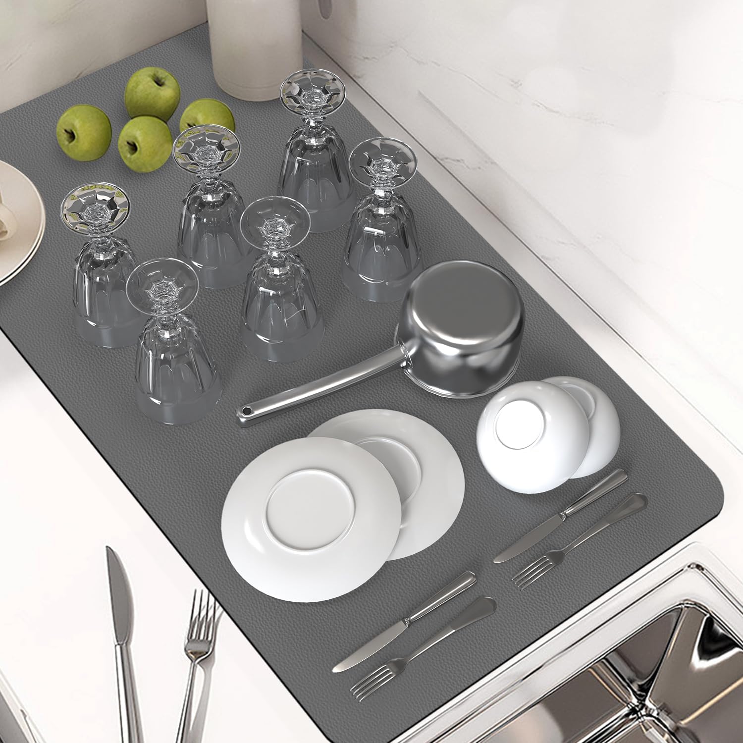 PoYang 31"x17" Coffee Mat X-Large, Coffee Bar Accessories for Countertop, Absorbent Dish Drying Mat, Anti-Slip and Hide Stain Pad for Espresso Machine, Espresso Maker and Kitchen Counter, Gray