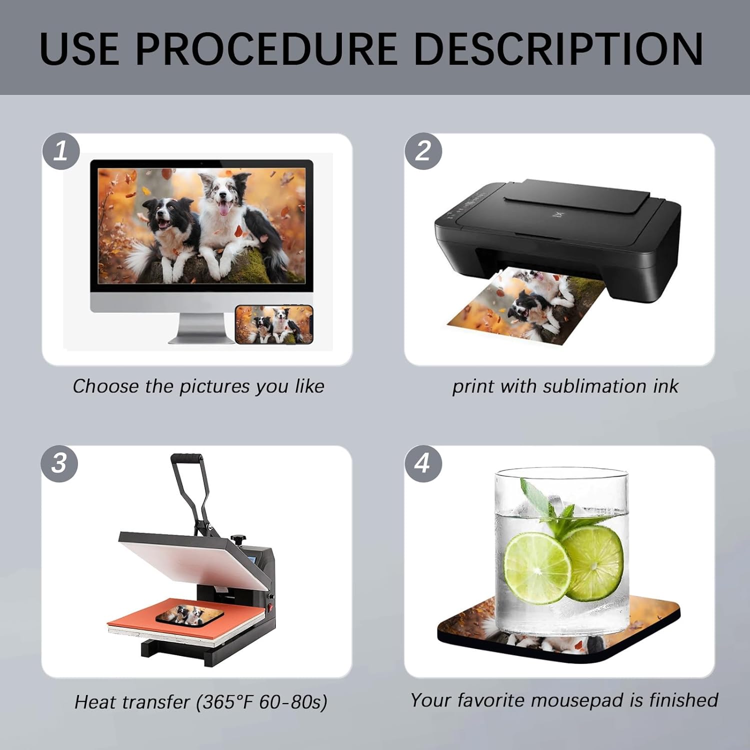 - 【A wide range of applications】Heat sublimation coasters can be designed in their own style, as birthday, Thanksgiving, friendship Day, Mother's Day, Father's Day, Christmas, Valentine's Day and other occasions to give gifts to family and friends; Very practical, can be used in kitchens, bedrooms, cafes and other places to place coffee cups, wine glasses, cups, glass bottles and so on.