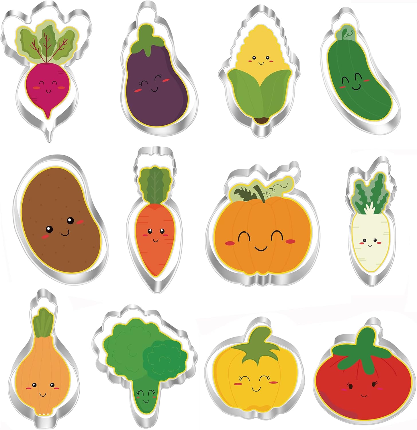 12pcs Vegetable Cookie Cutters set, Stainless Steel Fondant Cutters Set Pastry Biscuit Baking Clay DIY tools,By MrCookie