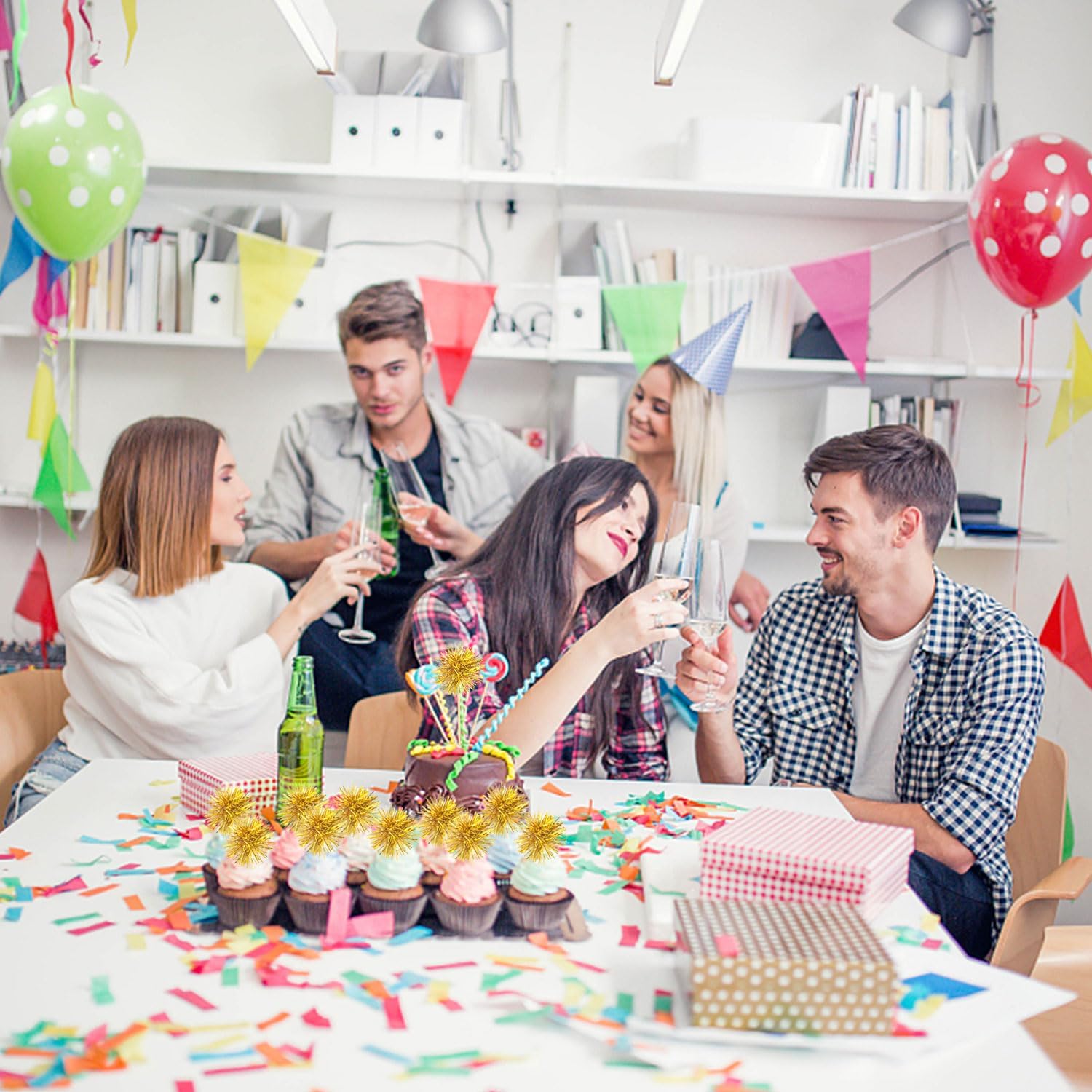 - [What You Will Get] the package includes 80 pieces of firework tinsel picks in gold, sufficient quantity and various colors to meet your needs on cake decorations.