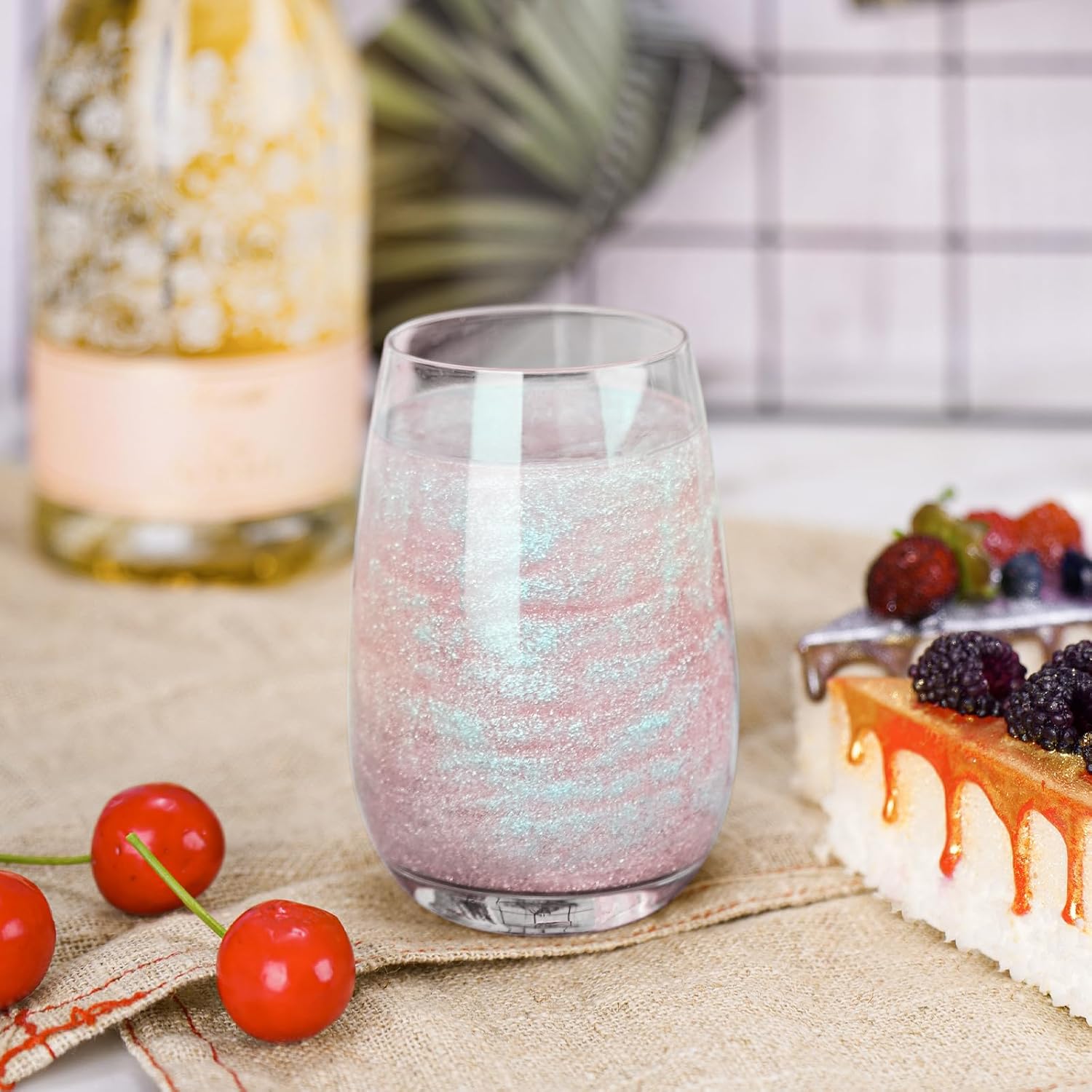 - ✔️【Use with Brews】Food-grade glitters are so fun and simple to use with brews. Add one pinch or two directly to your favorite beverage, mix it with cocktail syrups, juices, liqueurs, liquors, or spirits. Use a clear glass instead of opaque containers so that the liquid looks so cool, especially when you move it around in the glass with a stir. A tiny amount of dust can create a great visual spectacle, and clear liquids offer a great blank canvas for glitter to show off the best ability.