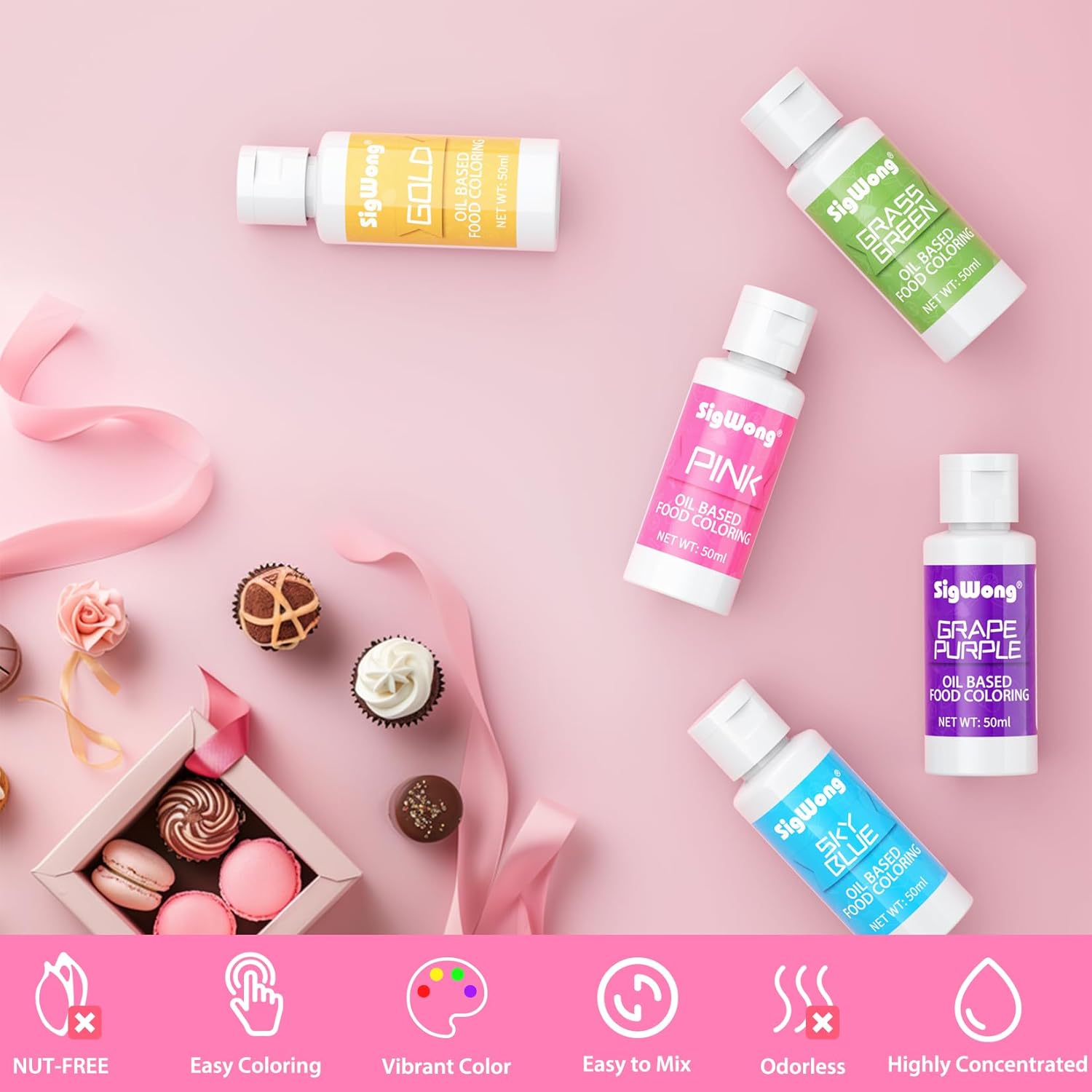- FOOD SAFETY & HIGH QUALITY - Our oil-based food coloring are made from food-grade raw materials, are odorless and tasteless, and will not change the taste or texture of food. Candy colorants are somewhere between a liquid and a gel and have a much thicker texture than other food colorants. It is strong and uniform, so only a small amount of food coloring is needed to produce vibrant colors without graininess.