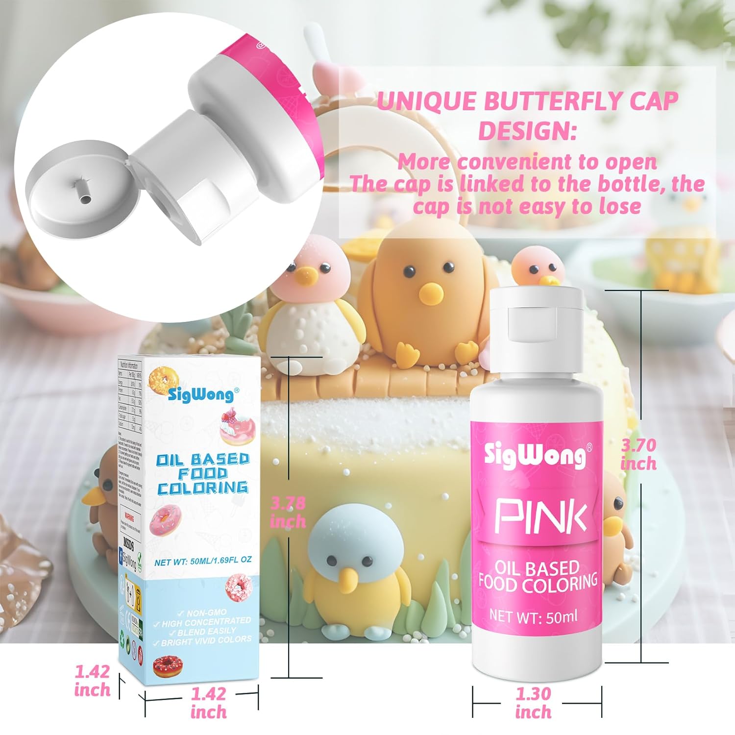 Oil Based Food Coloring for Chocolate - 50ml Pink Upgraded Edible Oil Based Food Dye for Cake Decorating, Baking, Candy Melts, Cookie, Icing Frosting, Fondant, Meringues - 1.69 Fl.Oz Bottles