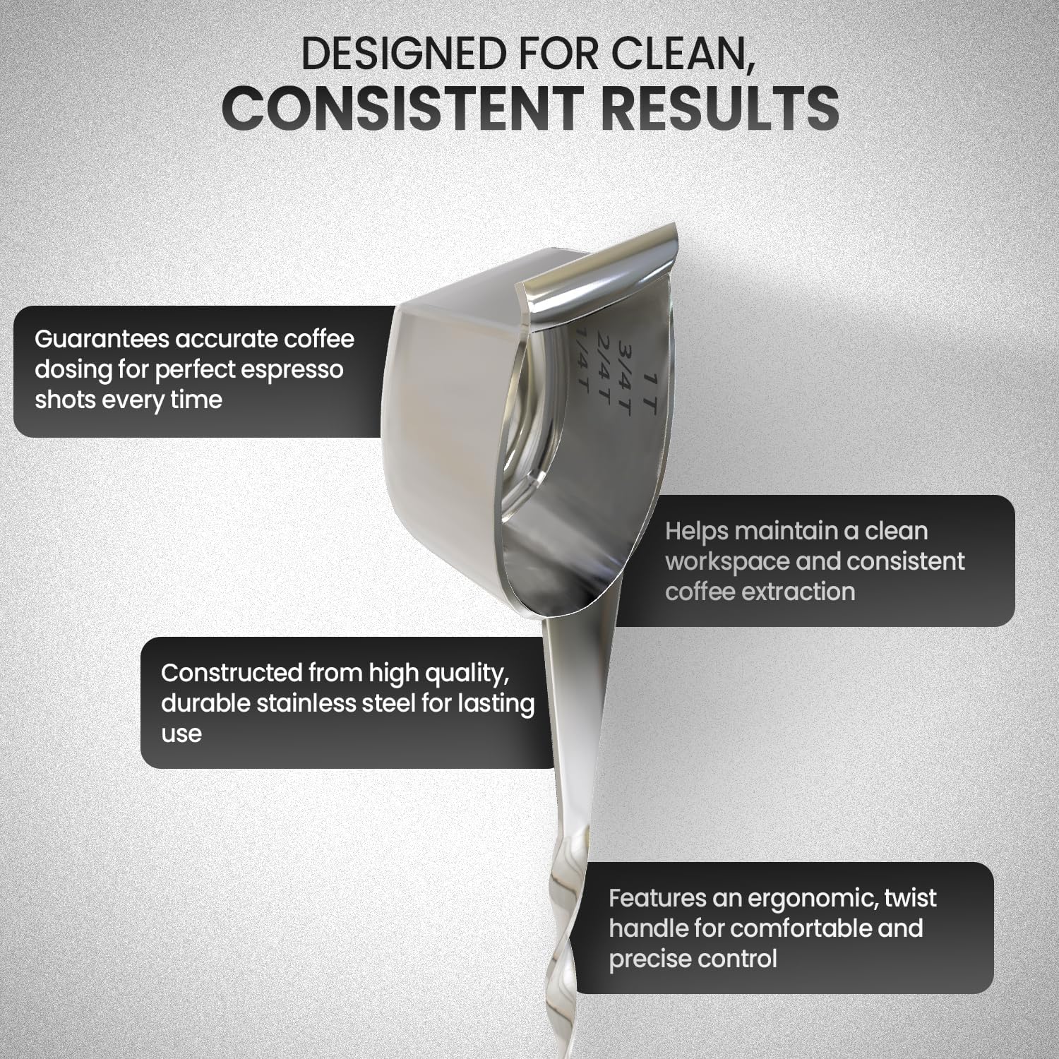 - PRECISION MEASUREMENT: The stainless steel Spoon Twist features a graduated measure, ensuring precise coffee dosing for the perfect espresso shot every time.