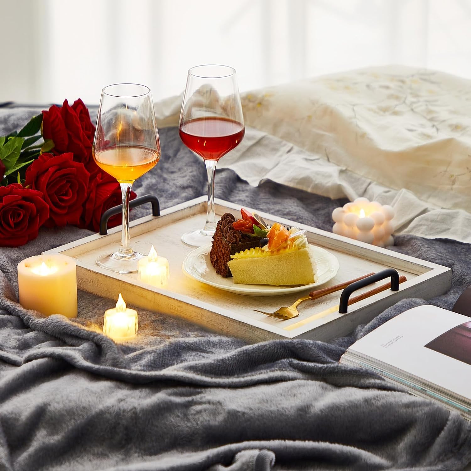- Rustic and Natural Design: these wooden serving trays feature a white color that adds a natural and rustic to most rooms; The wooden texture and grain on the surface give a unique and charming look that complements most decoration styles beautifully, deserving your investment
