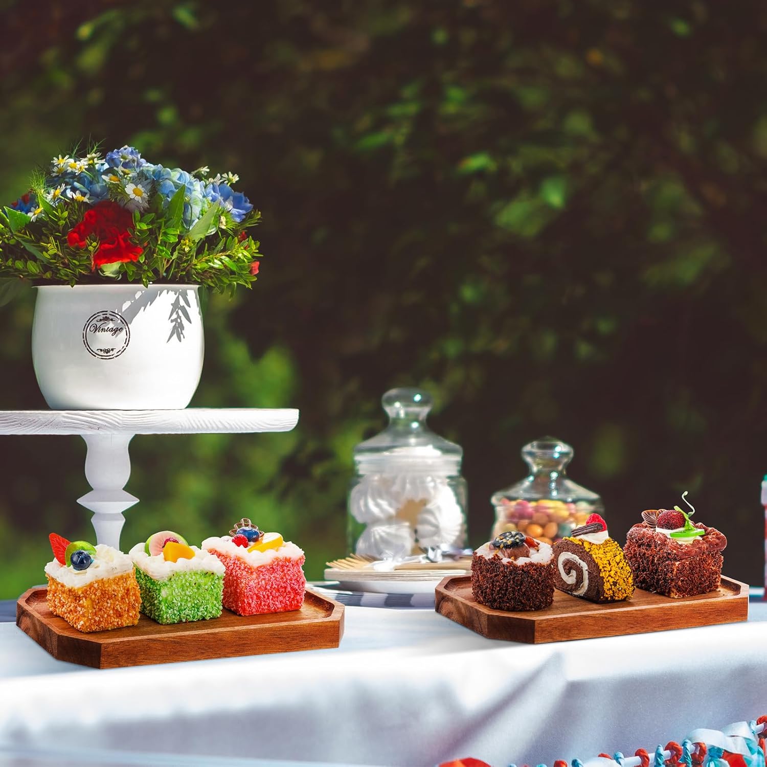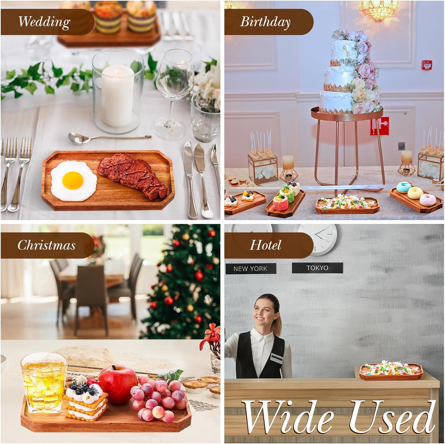 - Wide usages: the wood serving trays and platters is useful for weddings, parties, birthdays, Christmas, Thanksgiving or other events, suitable for entertaining guests at large events, hotel reception to serve cakes, fruits, salads, desserts, cookies or beverages such as coffee